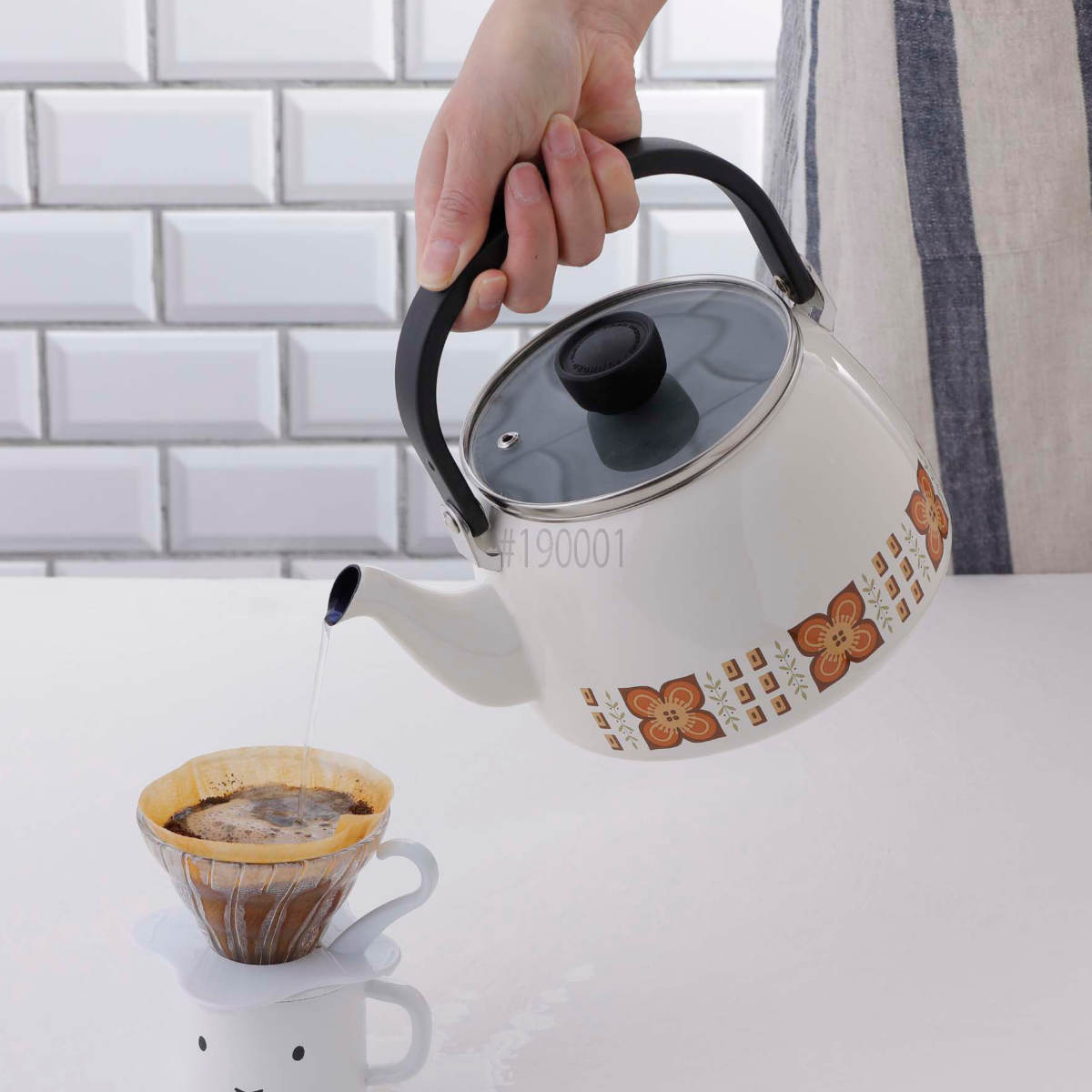 香ばしいナッツをイメージしたホーロー製のケトルです。どこか懐かしさを感じるレトロ風デザインは、1970年代に販売されていた復刻デザインです。鮮やかなカラーで、キッチンを明るく演出します。