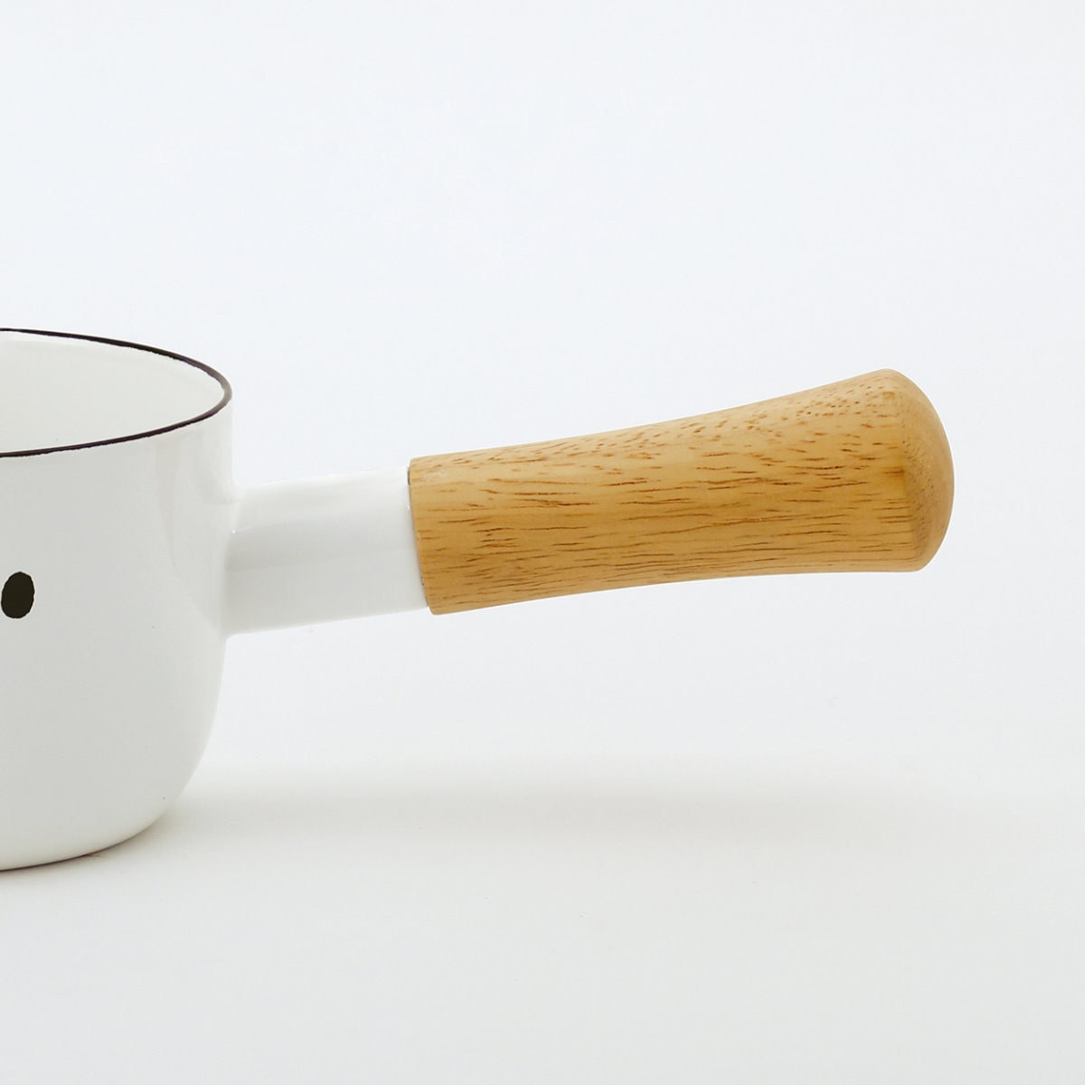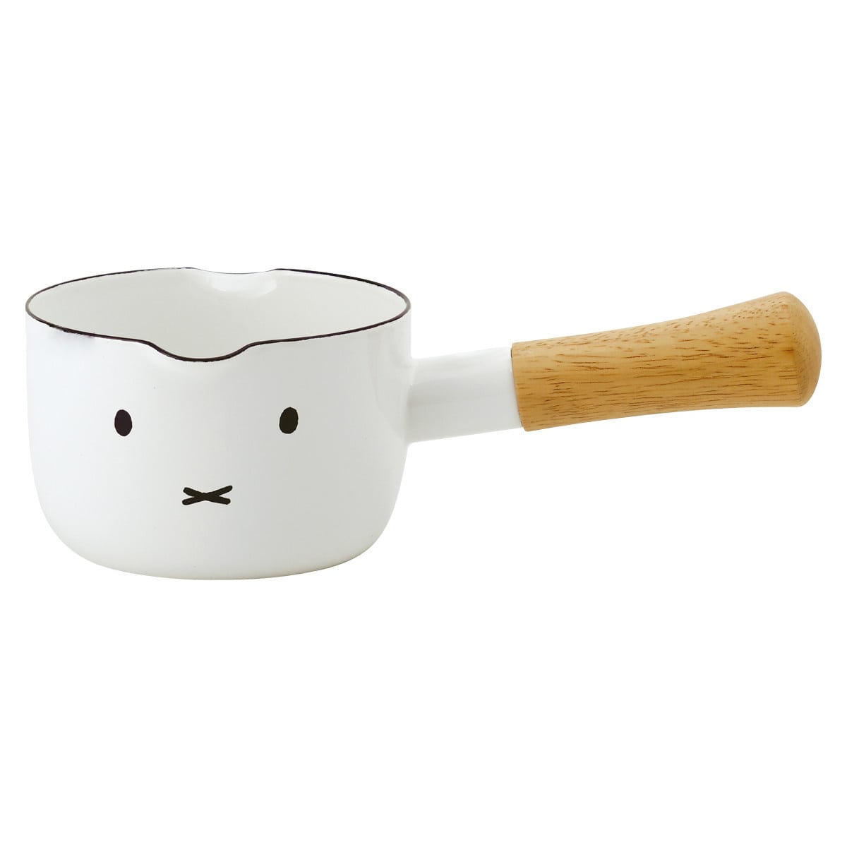 ミッフィーのかわいいおかおがデザインされたミルクパンです。1~2人分のドリンクの温めやスープ作り、離乳食作りにもちょうど良いサイズです。両側に注ぎ口があり、利き手を選ばず容器に移すことができ、使い勝手も抜群です。木製の取っ手なので熱くなりにくいです。ガス火専用です。