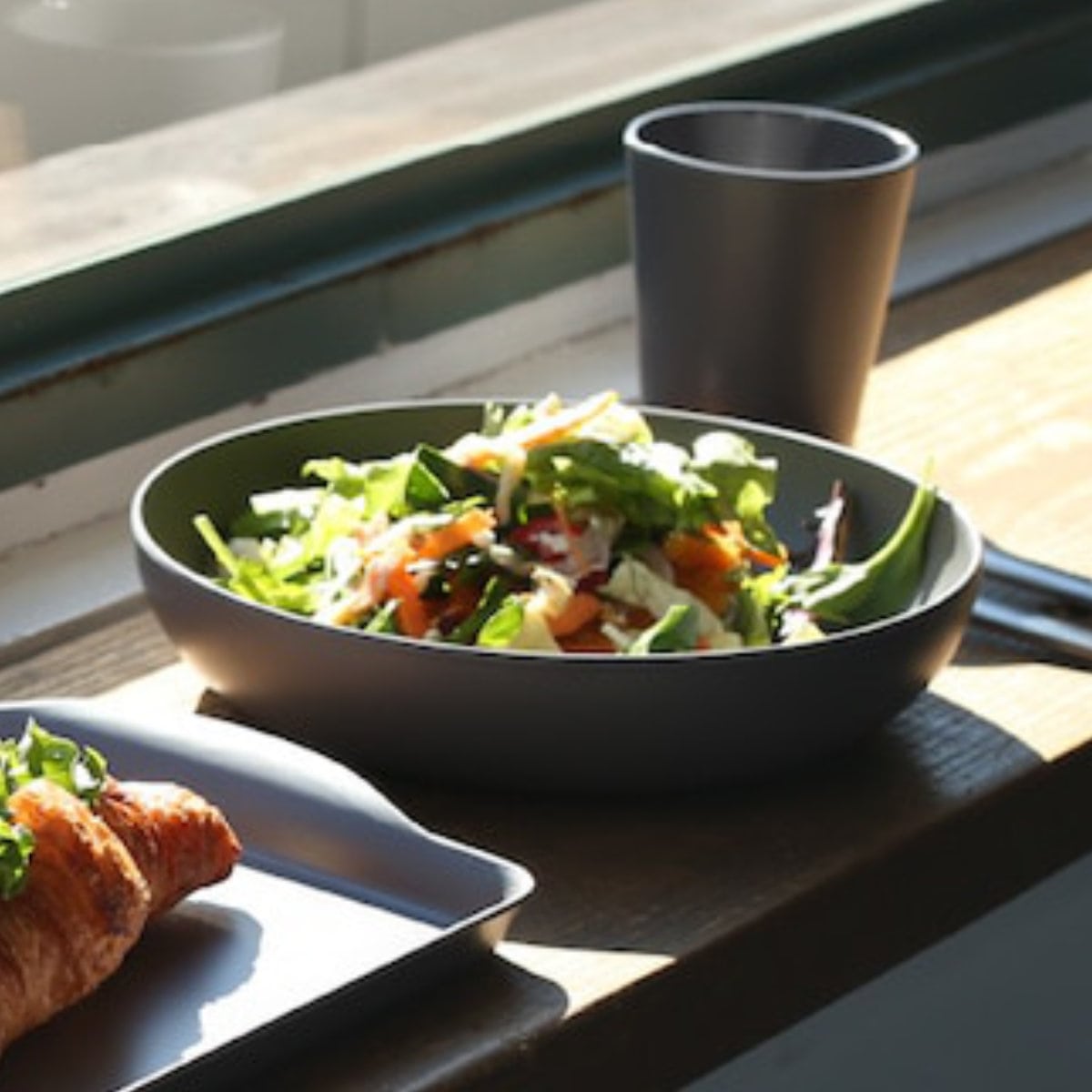 バンブー素材で作られた、軽くて丈夫な割れにくいディーププレートです。皆で取り分けるサラダや汁気のある大皿料理や、一人分のカレーやパスタなどにぴったりの大きさです。