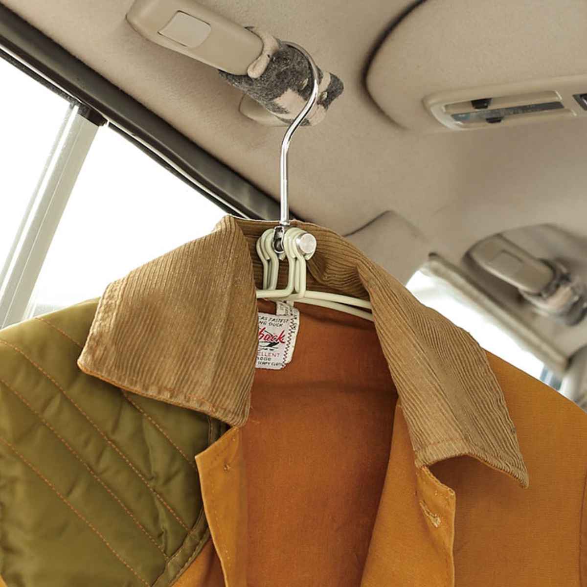 ハンガーを吊るすフック部分は回転式になっています。ホテルや外出先では吊るせる場所が限られているので、室内のドアや車内天井側に設置されたグリップなどに吊り下げるのに便利です。
