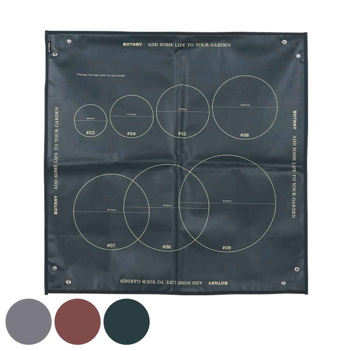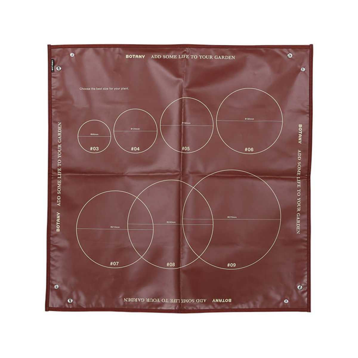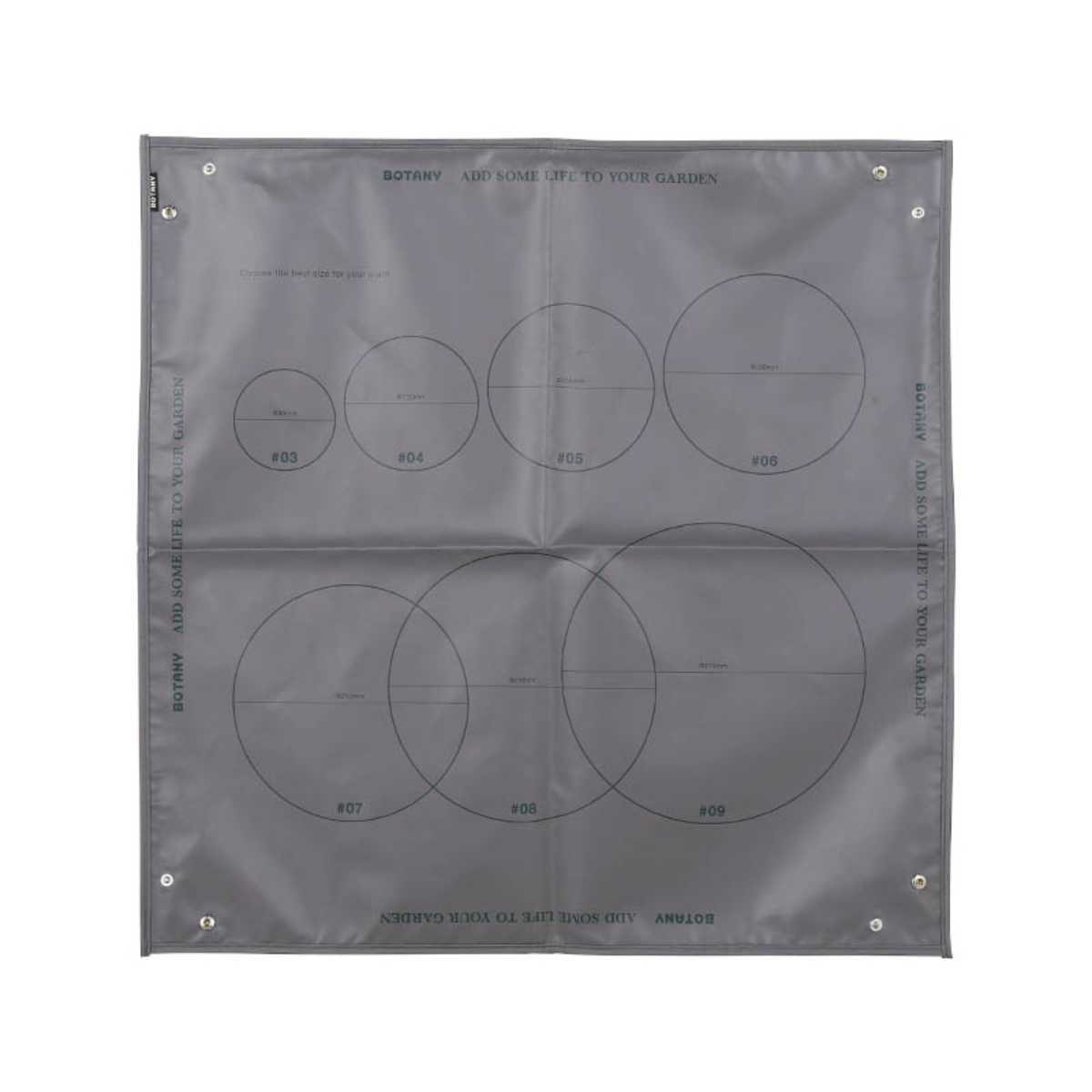 シートには3~9号までの鉢のサイズに合わせたサークルが描かれているので、植物を合わせて鉢のサイズを選ぶことができます。