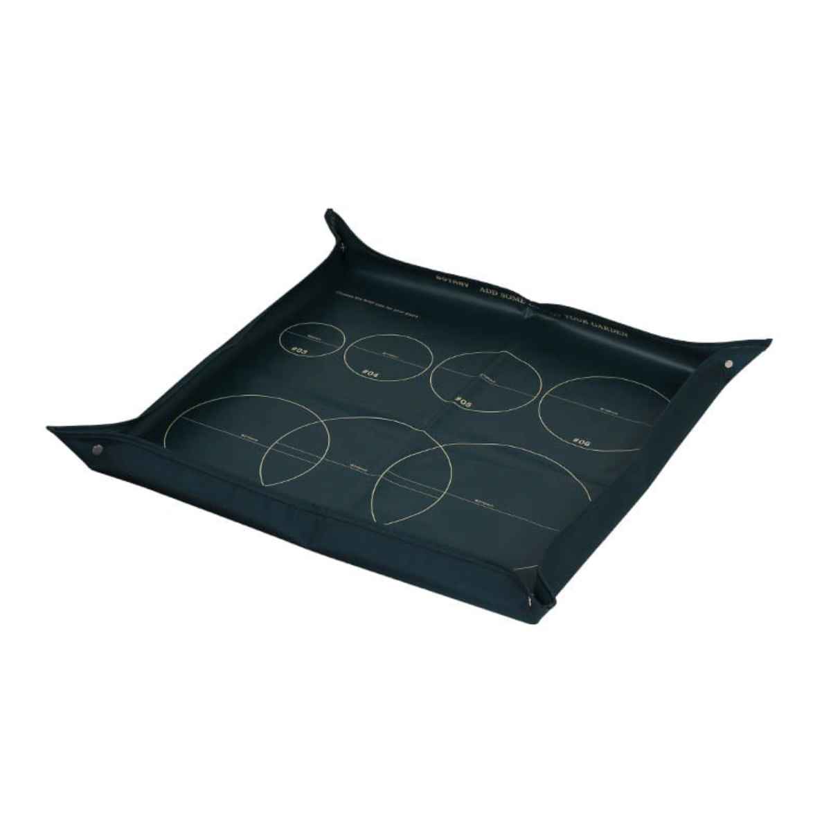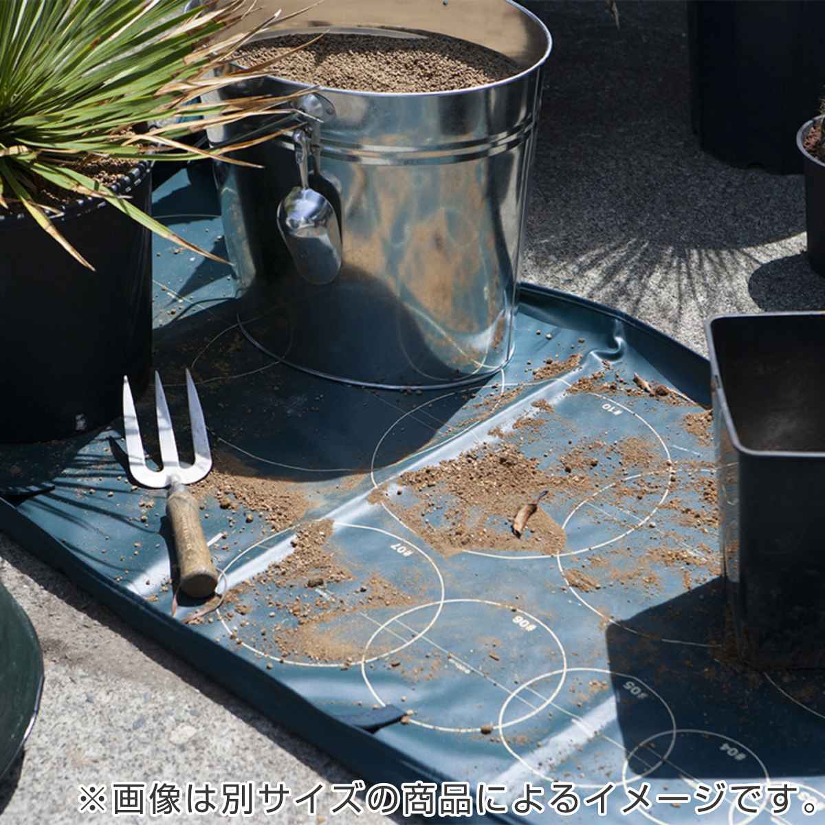 四つ角のスナップボタンとベルクロをとめて縁を立てることでトレイとしても使用できます。土や水が飛び散らずベランダや室内での土混ぜの際に便利です。シートに残った土は四隅のベルトを持てばそのまま運べて、片付けも簡単です。
