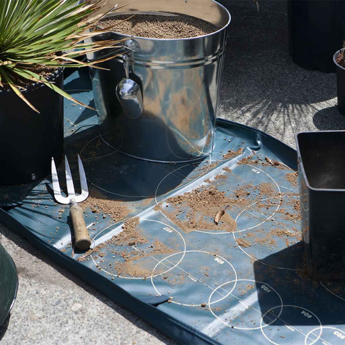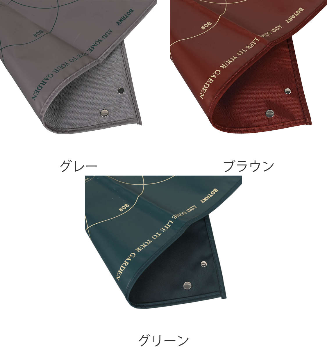 四つ角のスナップボタンとベルクロをとめて縁を立てることでトレイとしても使用できます。土や水が飛び散らずベランダや室内での土混ぜの際に便利です。シートに残った土は四隅のベルトを持てばそのまま運べて、片付けも簡単です。