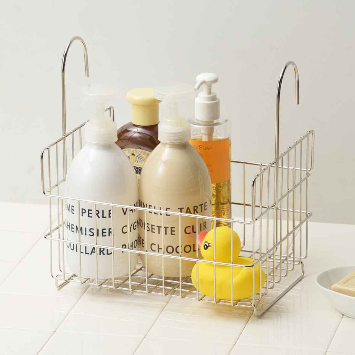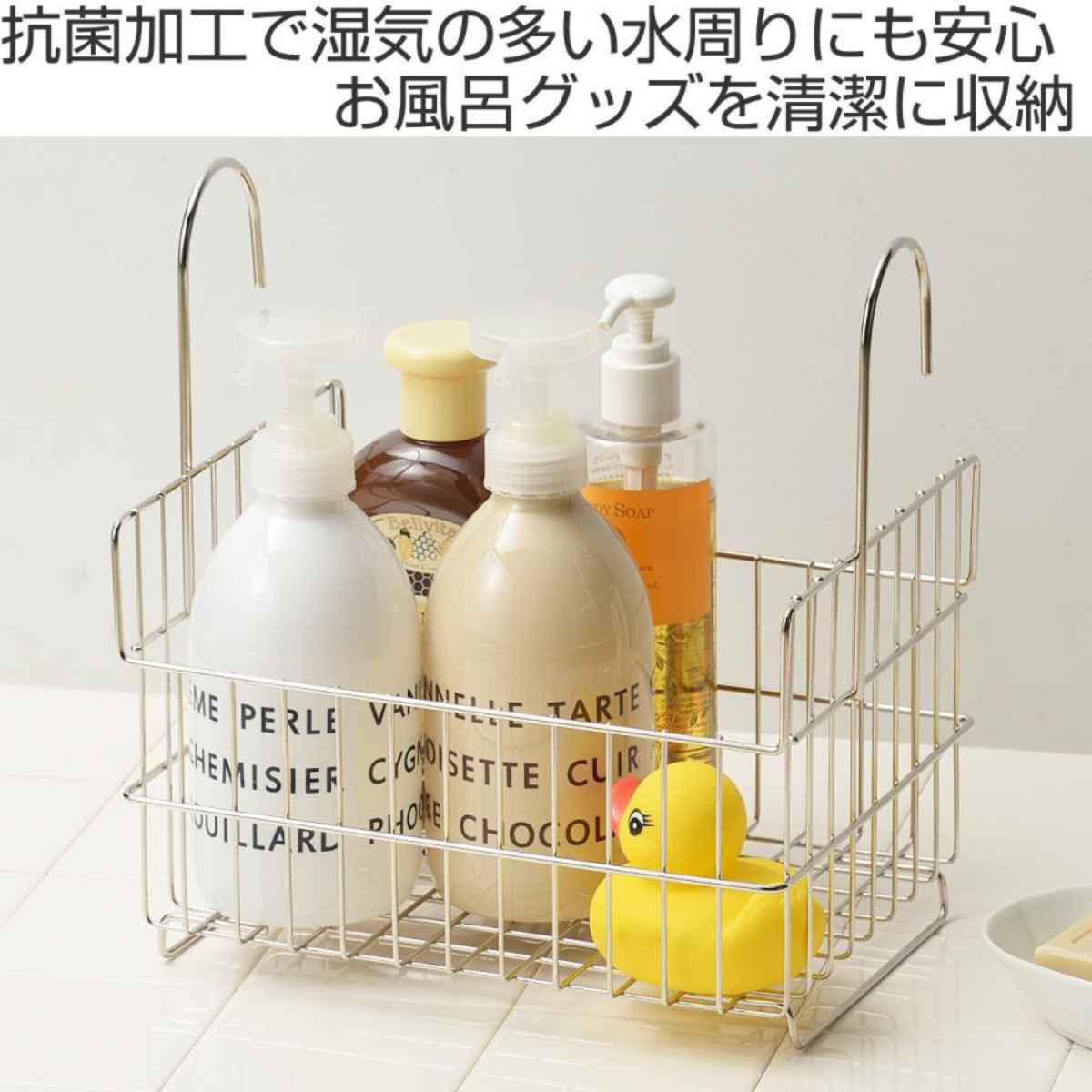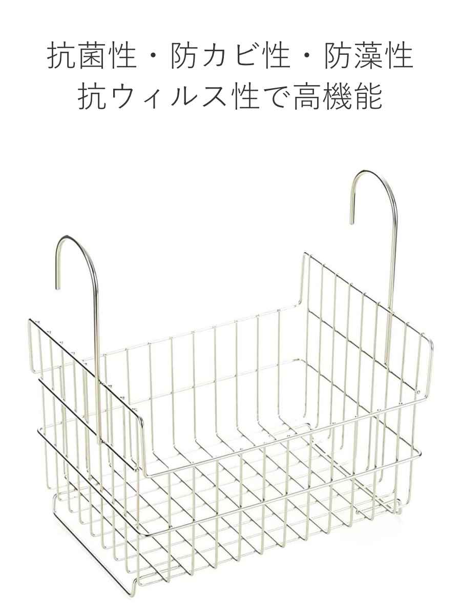 浴室内のタオルバーに引っ掛けてお風呂グッズをすっきり収納できる、抗菌タイプのお風呂用バスケットです。抗菌めっき加工が施されているので、水周りや湿気の多いバスルームも、長く綺麗にお使いいただけます。