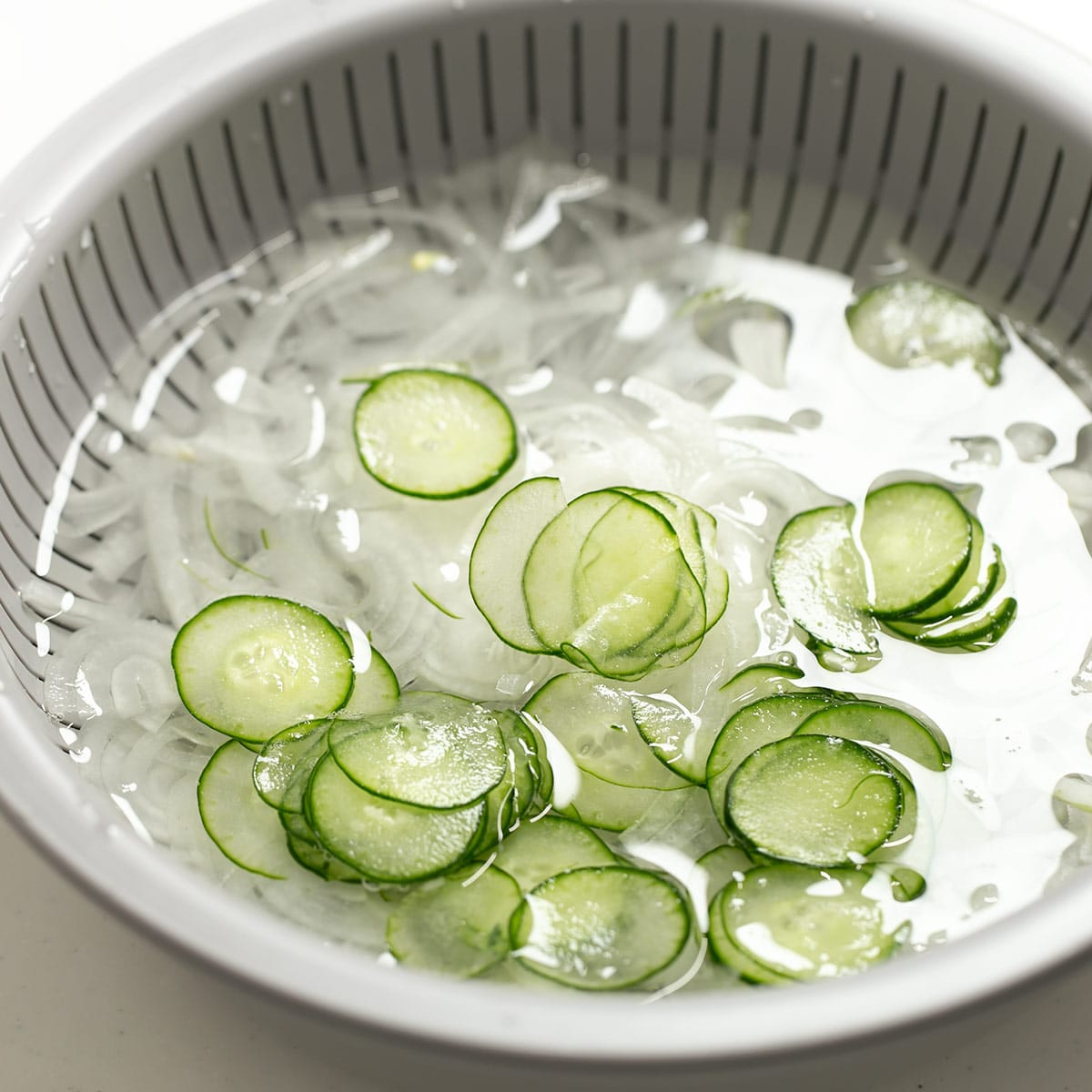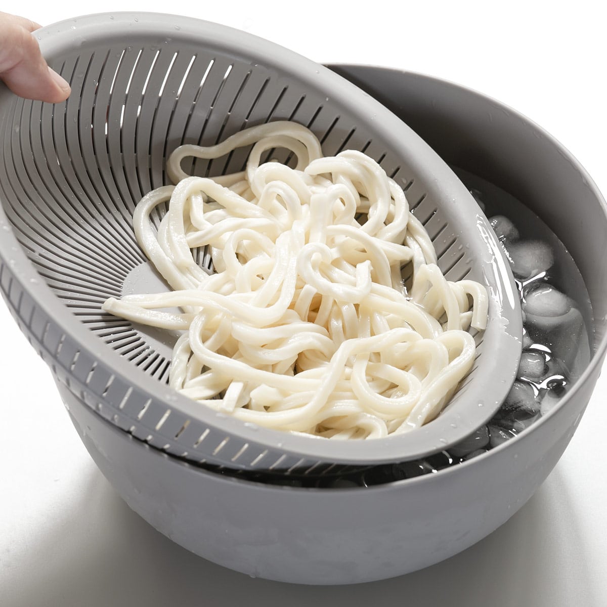 独自素材で耐熱性があるため、湯切りにも使うことができます。そうめんや枝豆を湯切りしたら器としてそのまま食卓に出せて便利。そのほか、野菜の水切りはもちろん、貝の砂抜き、マッシュなど様々な使い方ができ、毎日の調理を快適にアシストします。