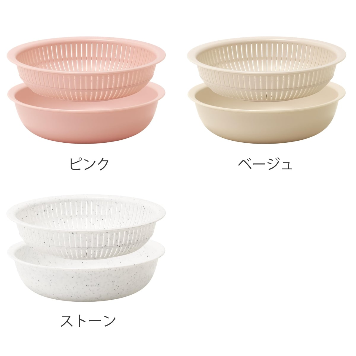 | 材質 | ザル:ポリプロピレン、熱可塑性エラストマー ボウル:ポリプロピレン |