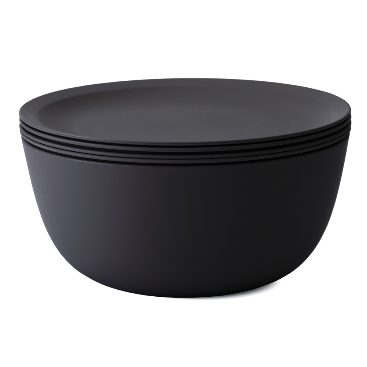 深型・浅型・プレート、すべてを重ねてコンパクトに収納できる設計になっています。カウンターなどに出しておいてもごちゃついて見えず、シンク下の限られた収納スペースでも場所をとりません。