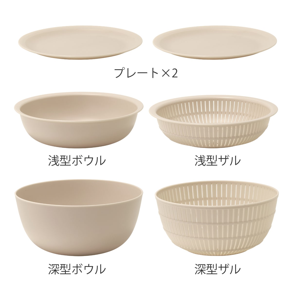 | 内容量 | 6点セット(深型ザル・ボウル、浅型ザル・ボウル:各1個、プレート2枚) |
