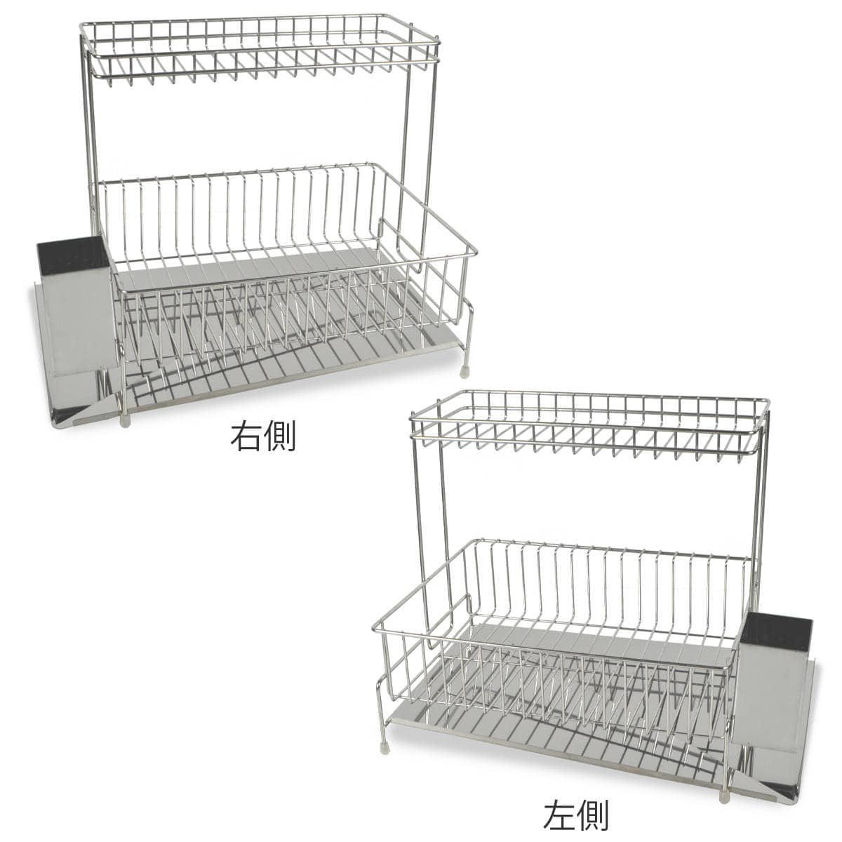 こちらの水切りには右置き用と左置き用の2種類があります。ご自宅のキッチンや設置する場所に合わせて、使いやすい方をお選びいただけます。右置き用はキッチンに向かって右側が作業スペースの場合、左置き用はキッチンに向かって左側が作業スペースの場合に最適です。