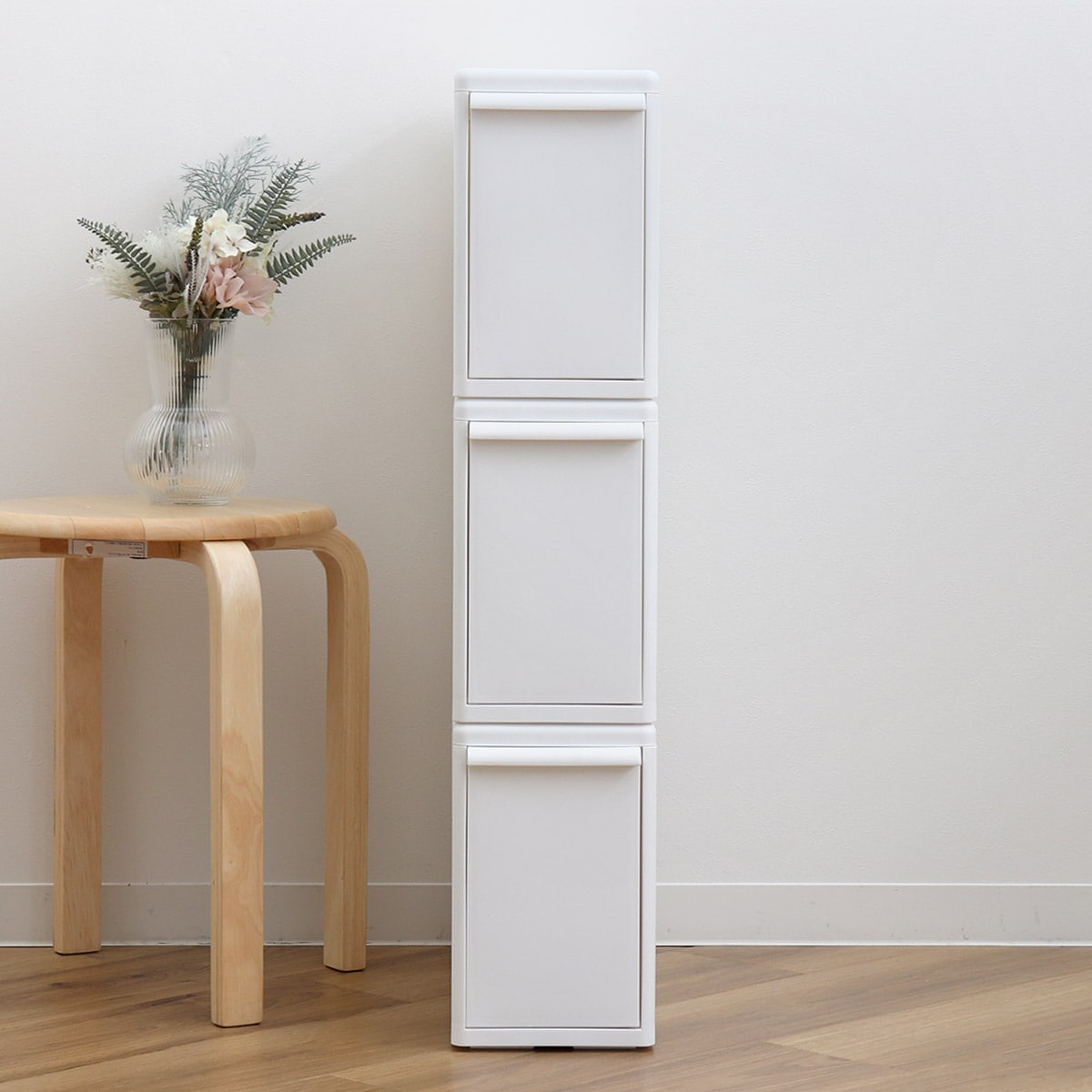同じ幅の商品をジョイントすると、全体の高さは1段ごとに「約2.5cm」ずつ低くなります。ジョイントせずに、そのまま積み重ねることも可能で、その場合全体の高さは1段ごとに「約1cm」ずつ低くなります。