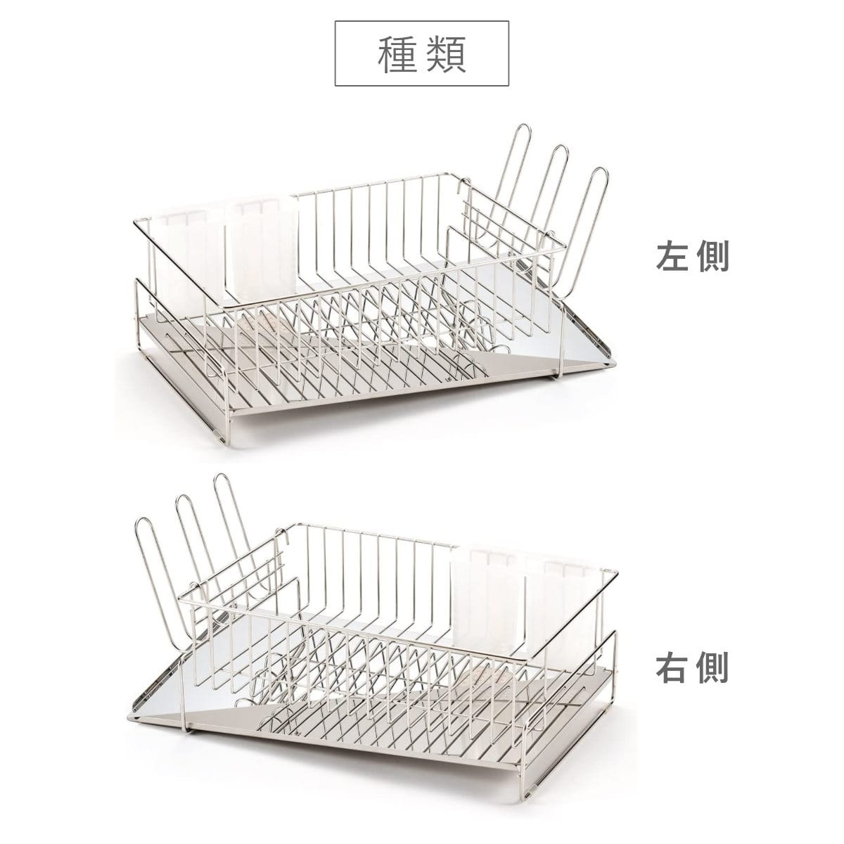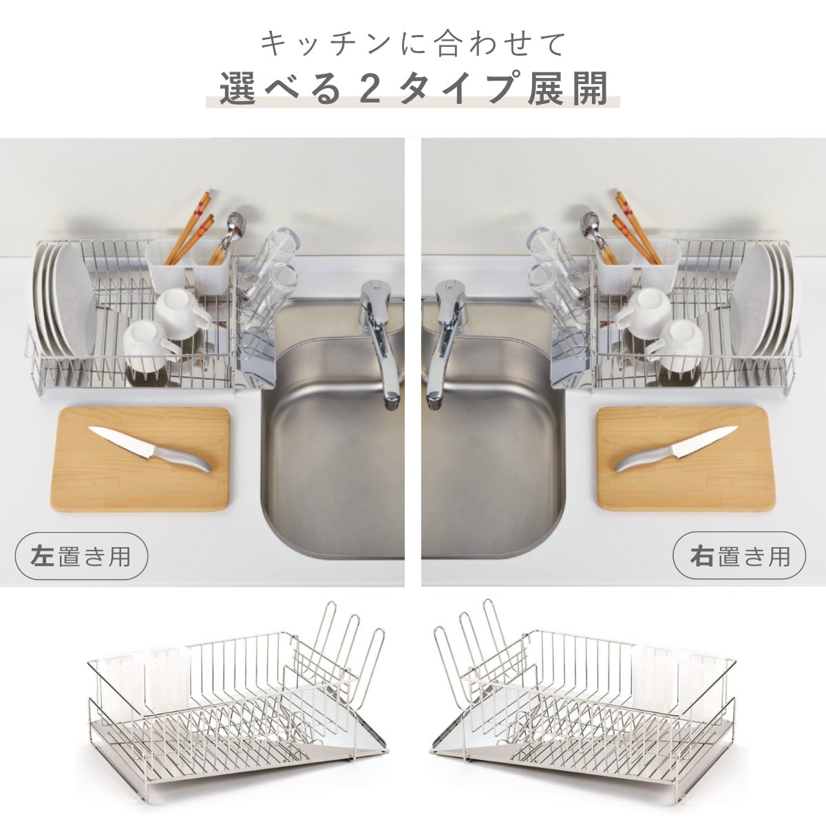 シンクの左側に作業スぺースがある場合は「左置き用」、シンクの右側に作業スぺースがある場合は「右置き用」となります。