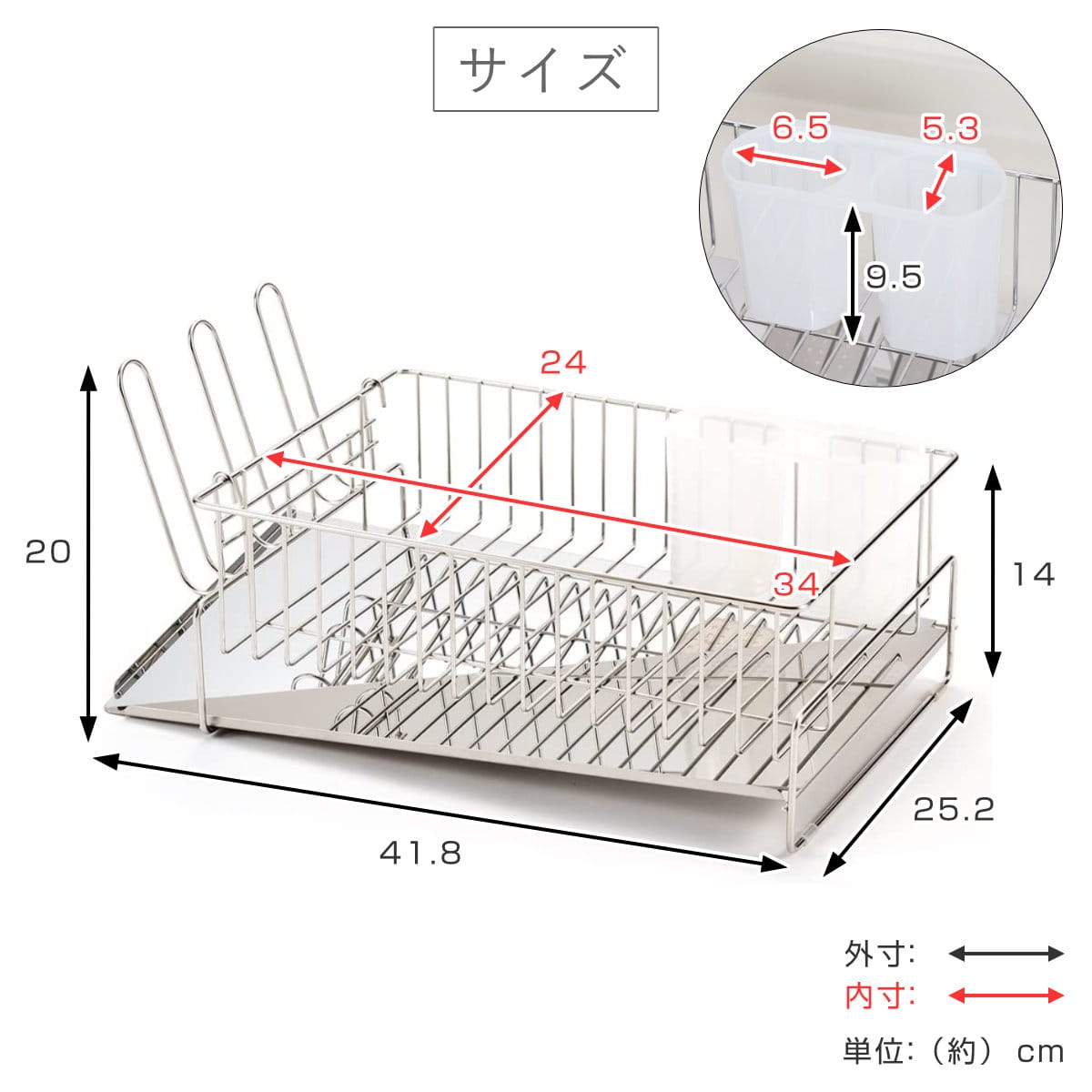 | 材質 | 本体:18-8ステンレス トレイ:ステンレススチール 箸立て:ポリプロピレン |
