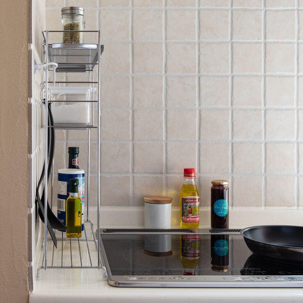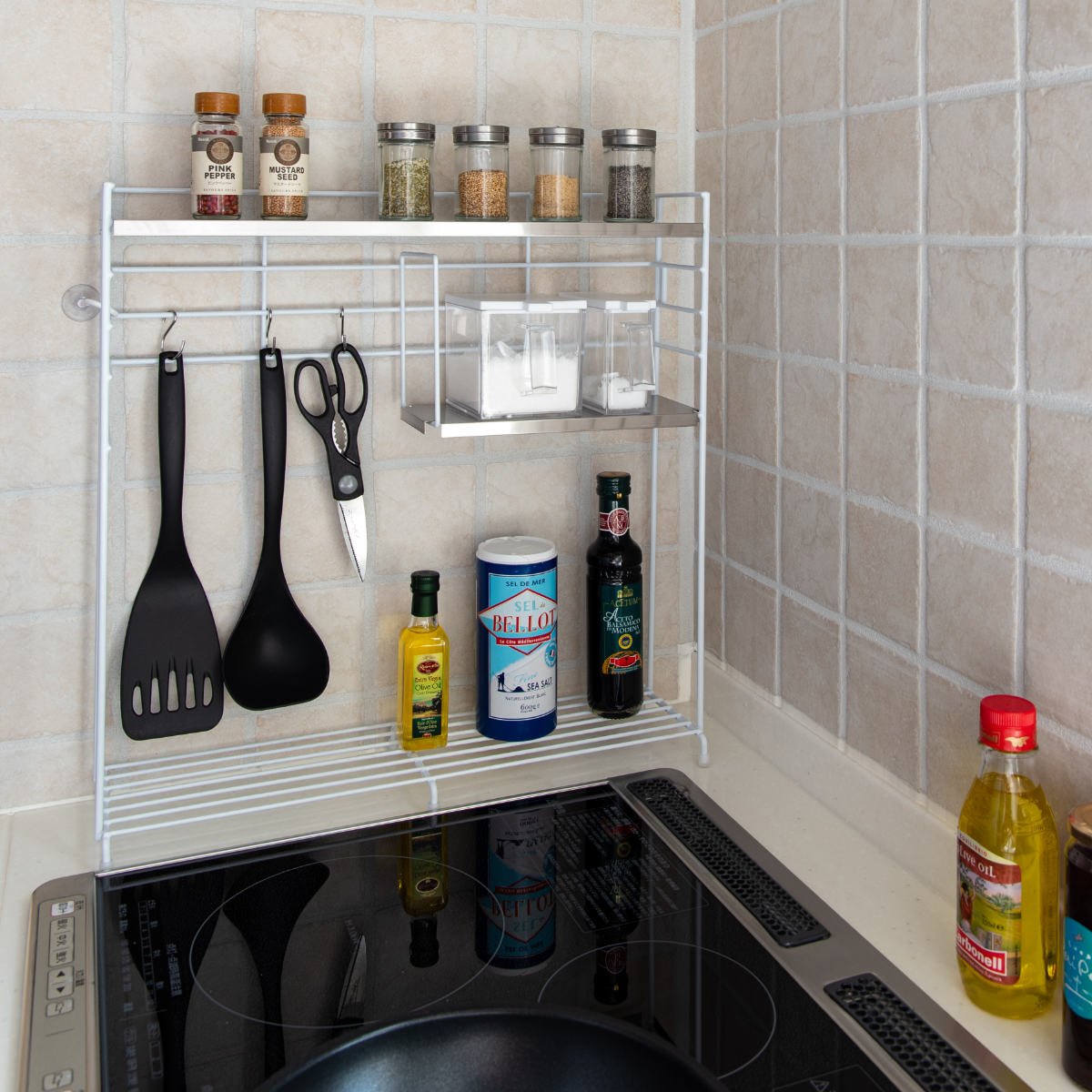 ●調味料やキッチンツールなどをラックにまとめれば、キッチンがすっきり整います。