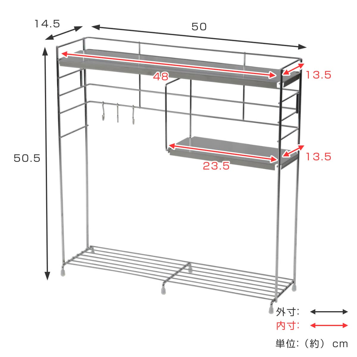 | サイズ | 約 幅50×奥行14.5×高さ50.5(cm) |