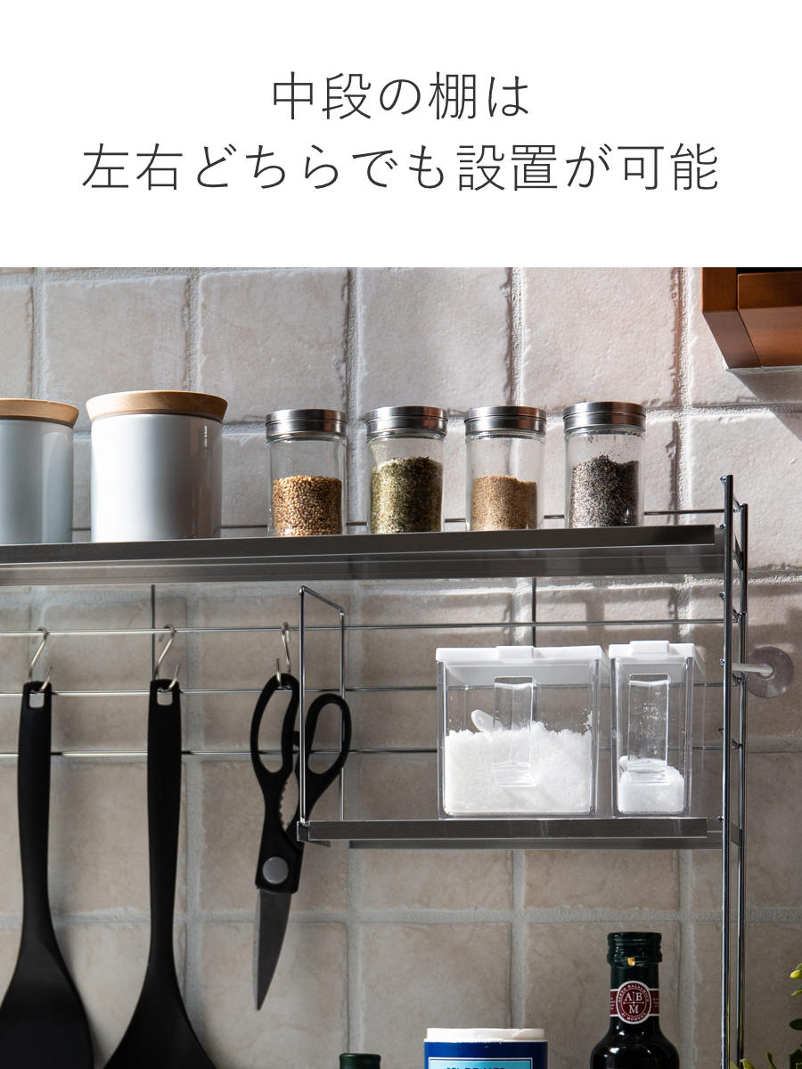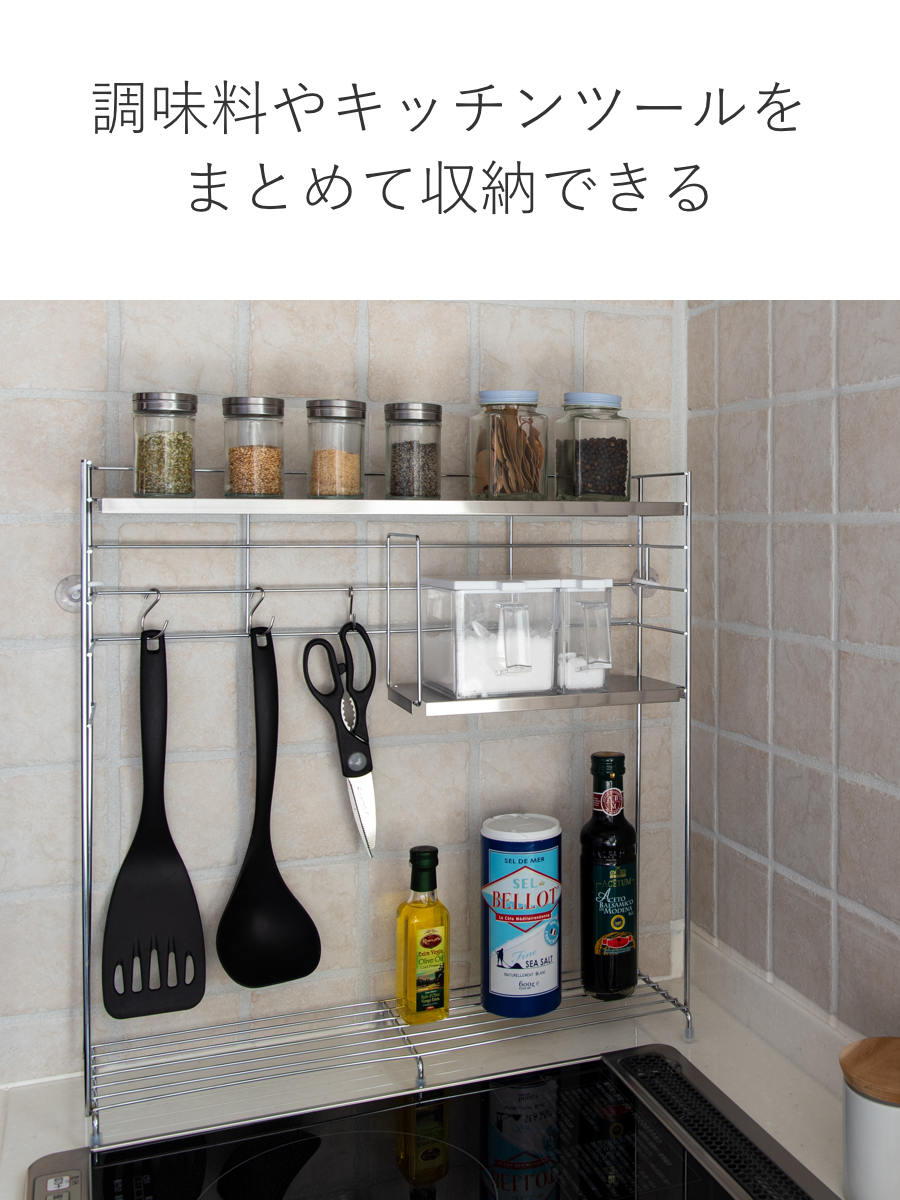 無駄の無いシンプルなフォルムが印象的なキッチンラックです。奥行はわずか約14.5cmとスリムなので、コンロ横や奥などの限られたスペースに置くことができます。調味料やキッチンツールなどをラックにまとめれば、キッチンがすっきり整います。