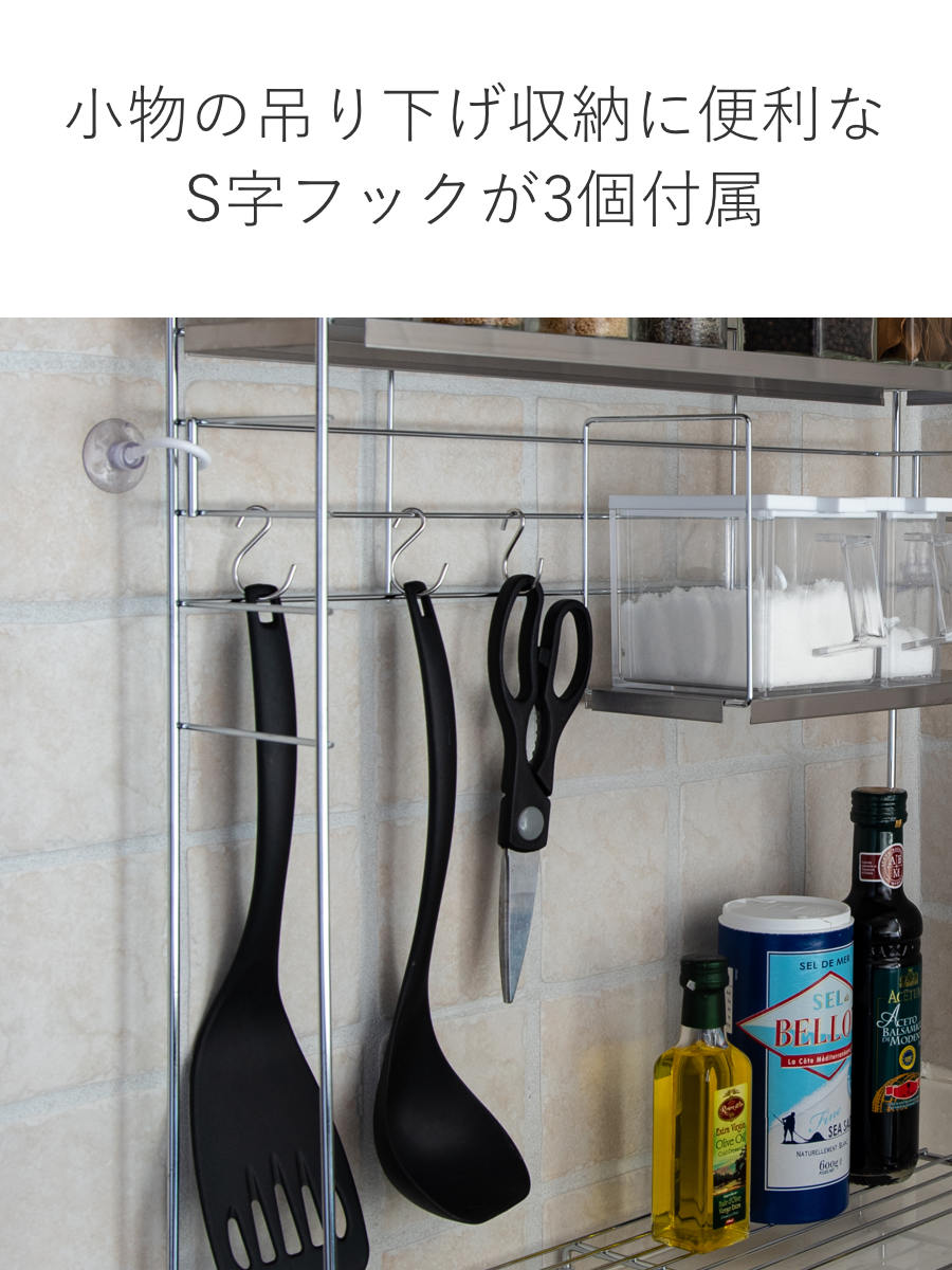●キッチンツールを掛けて収納する時に便利なS字フックが3個付属しています。