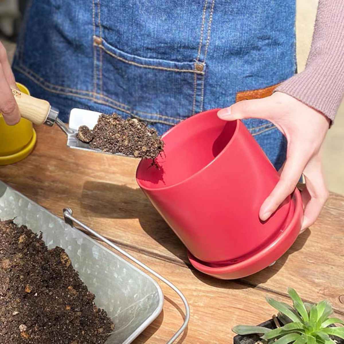 ソーサーとポットが一体となった、無駄のないシンプルなデザインが特徴です。鉢によって植物の表情も変わって見えますが、こちらの鉢と合わせると、植物をどこか上品な雰囲気にしてくれます。
