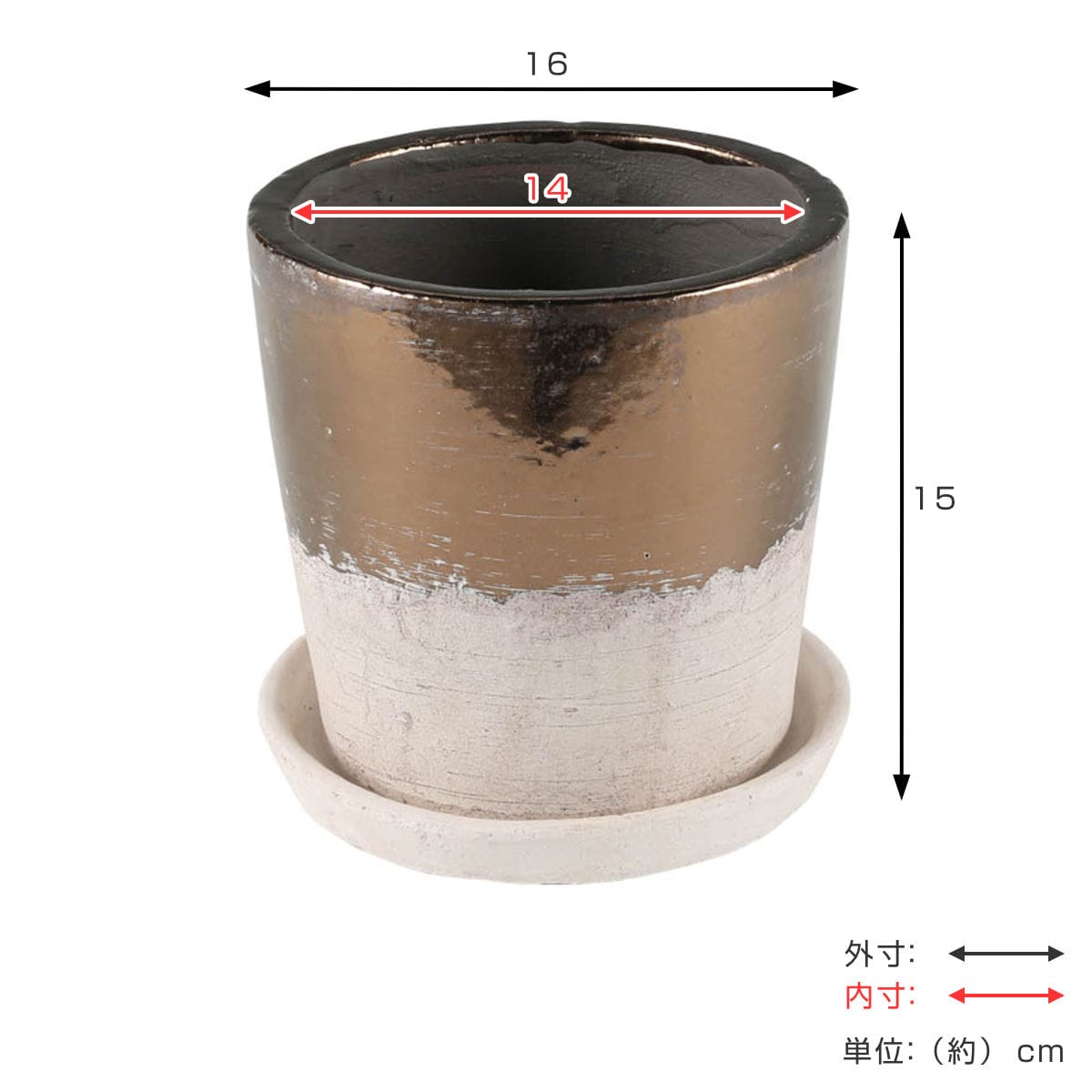 | 備考 | ※底穴あり、ソーサー付 ※4.5号鉢目安 |
