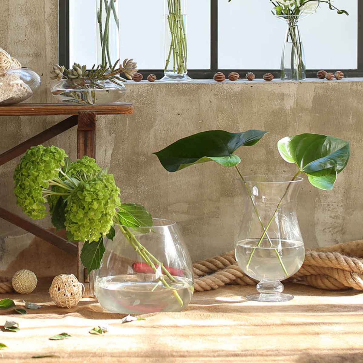 カジュアルスタイルのワイングラスを大きくしたかのような、ガラスベースです。キュッと締まったくびれが、さり気なくセクシーで色っぽいデザインです。中に収めた物の魅力を引き出すシンプルなフォルムなので、プロのデコレーターやコーディネーターの方にも人気のアイテムです。