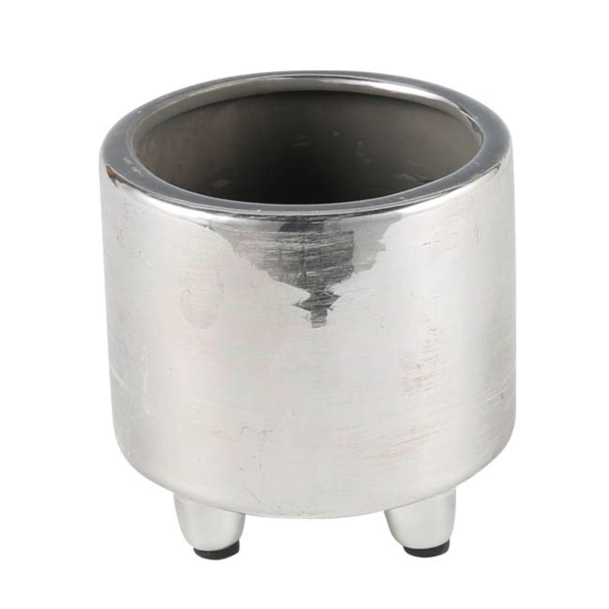 愛嬌のあるちょこんとした脚と、シルバーのボディカラーが特徴的なストーンウェア素材のポットです。シャイニーなシルバーがインテリアのアクセントとして存在感を放ちます。
