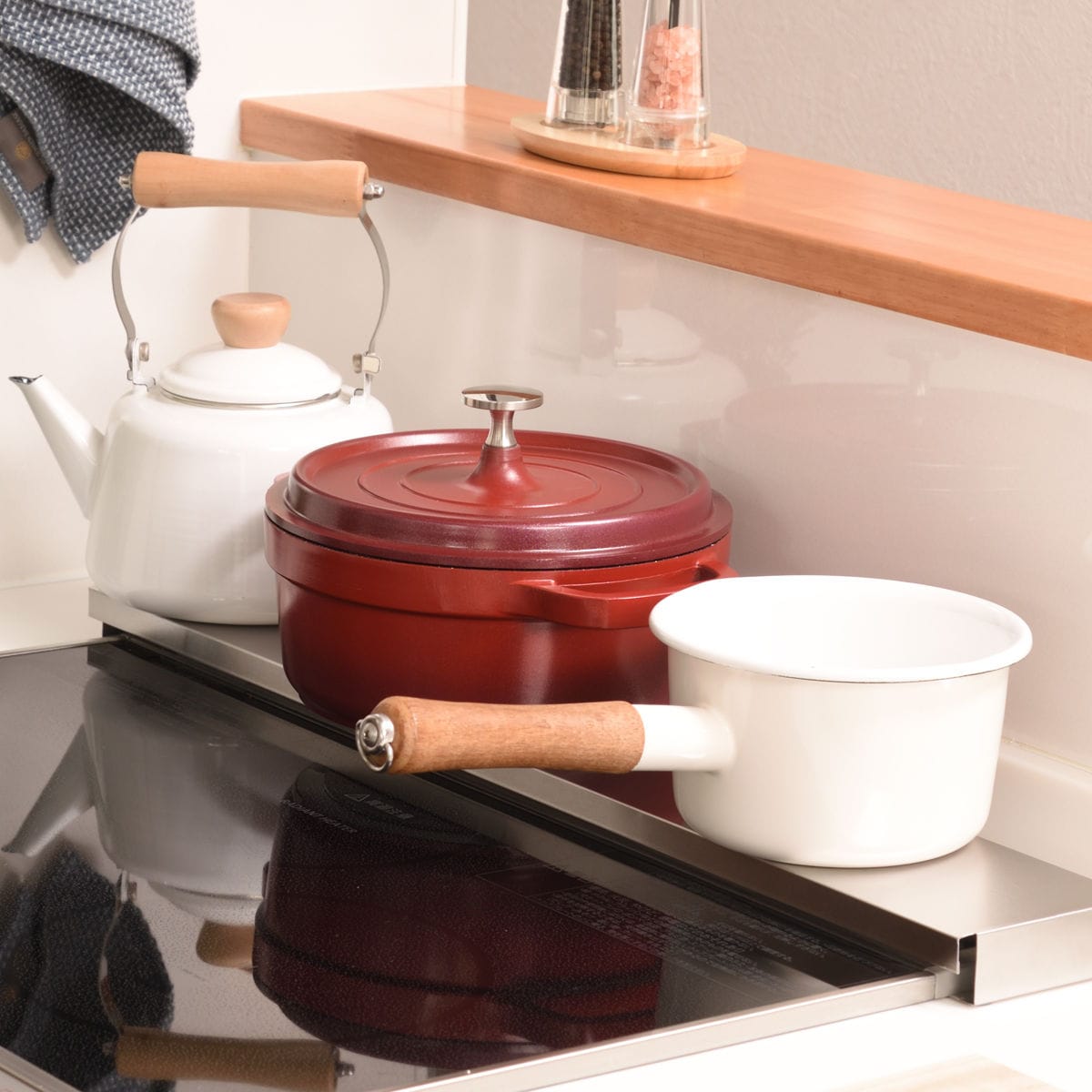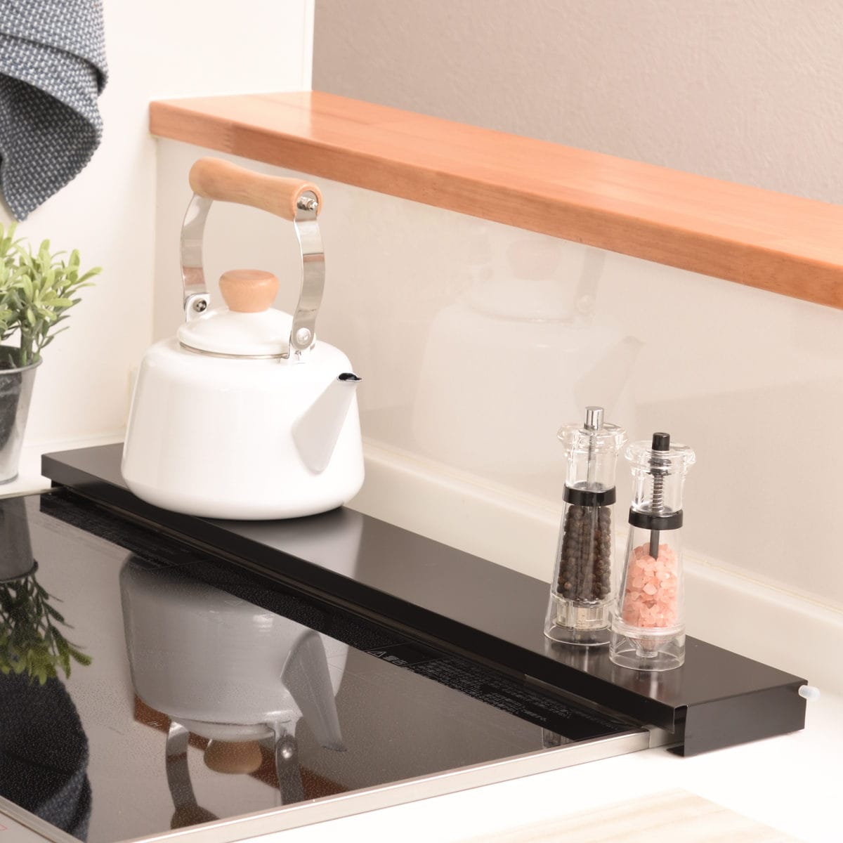 ガスコンロに置いても五徳に干渉しないスリムボディになっています。フラットな設計でコンロ周りをスッキリ見せてくれます。