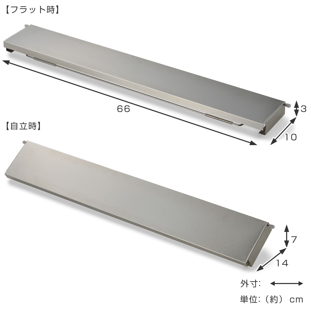 | サイズ | フラット時:約 幅66×奥行10×高さ3(cm) 自立時:約 幅66×奥行14×高さ7(cm) |