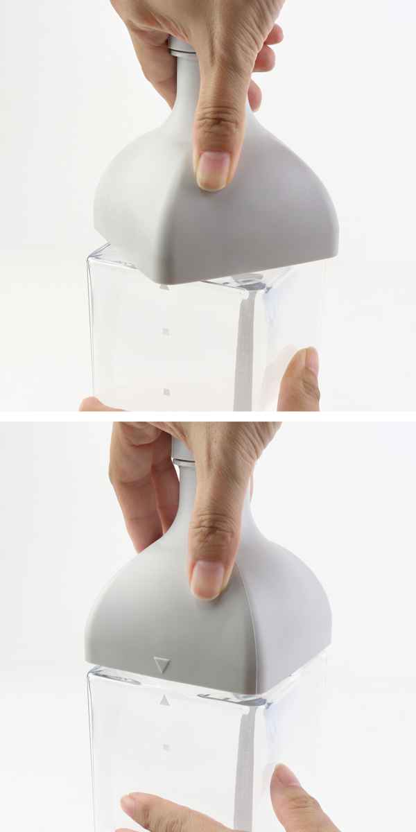 注ぎ口の▼マークとボトルの▲マークを合わせてしめます。閉め終わりは▼▲マークが同じ位置になります。