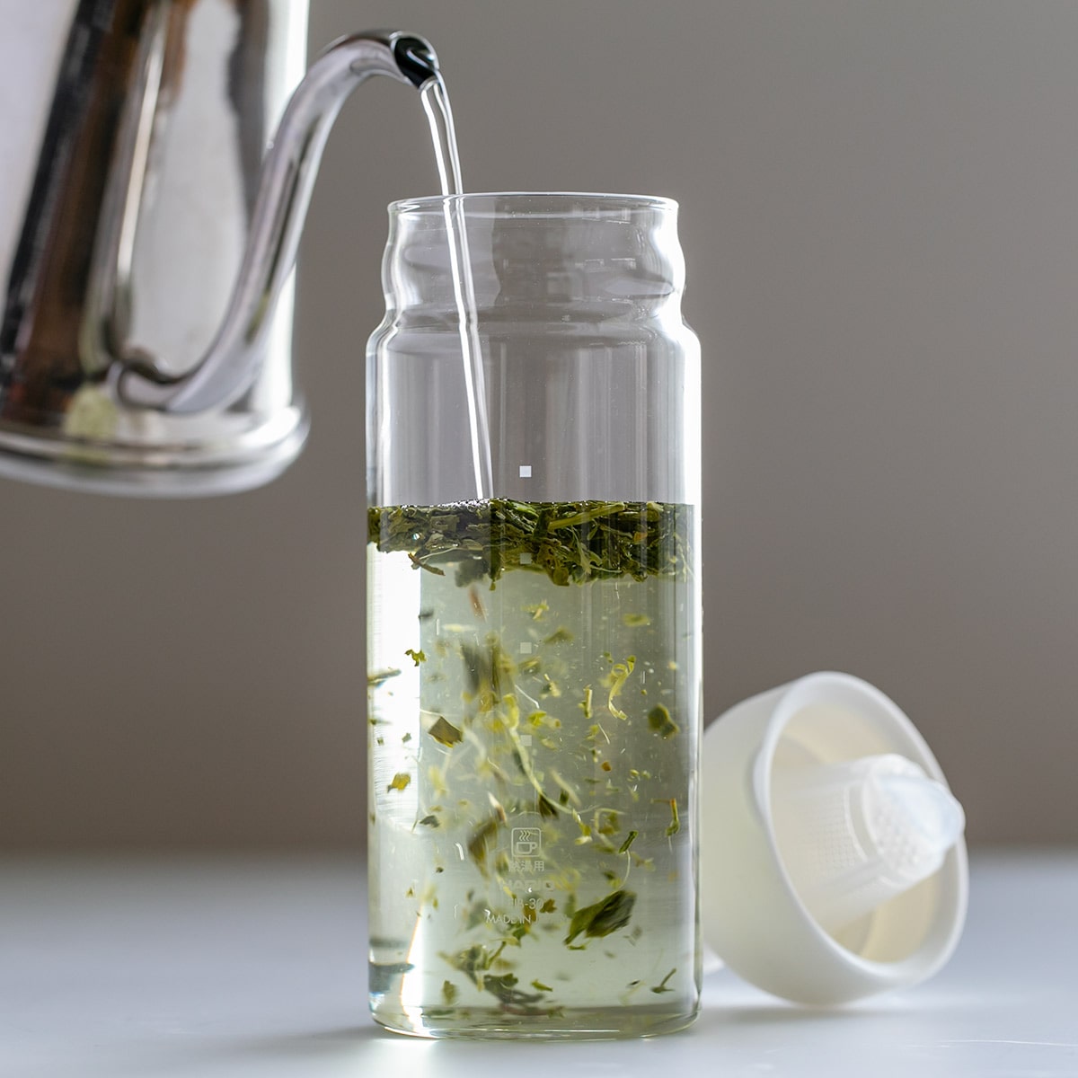 水出し茶を簡単に作れるフィルター付きのボトルです。水出し茶は、水でゆっくり時間をかけて抽出するので、まろやかな味わいになり、茶葉本来の味や香りを楽しめます。夜に作れば、朝には本格的な水出し茶ができているので、素敵な朝時間が過ごせそうです。