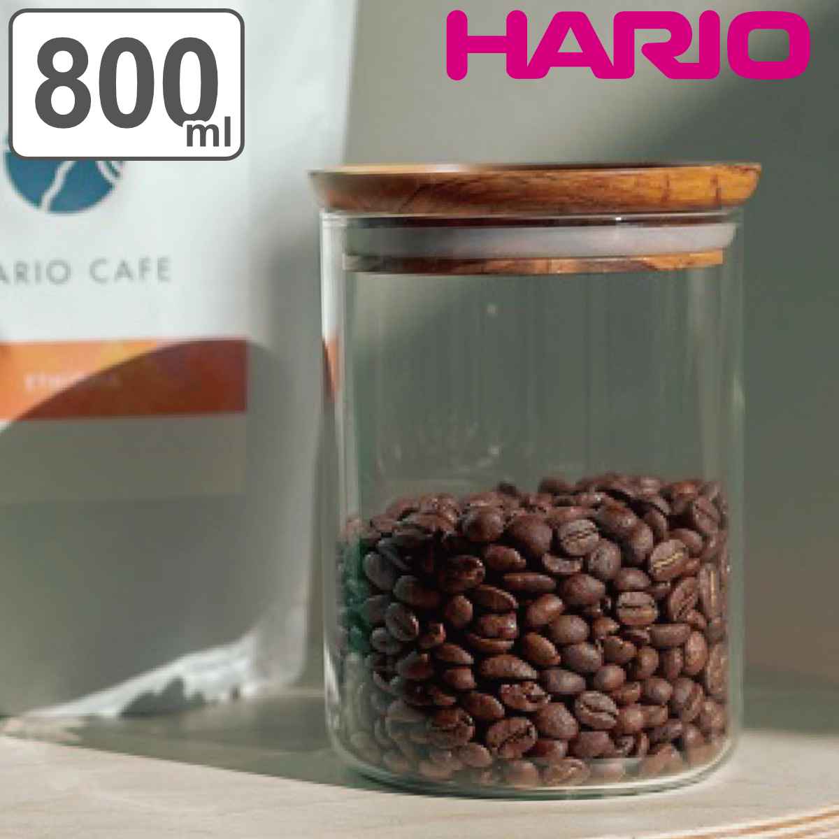 キャニスターの満水容量は約800mlとなっています。コーヒー粉200gがほど良く入るサイズです。コーヒー豆や茶葉、ドライフルーツ、ナッツ類などの保存に最適です。