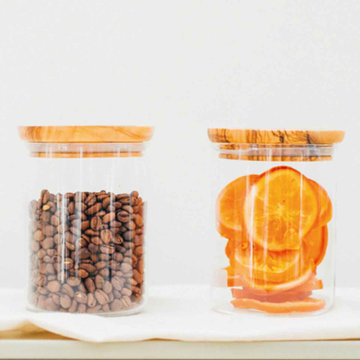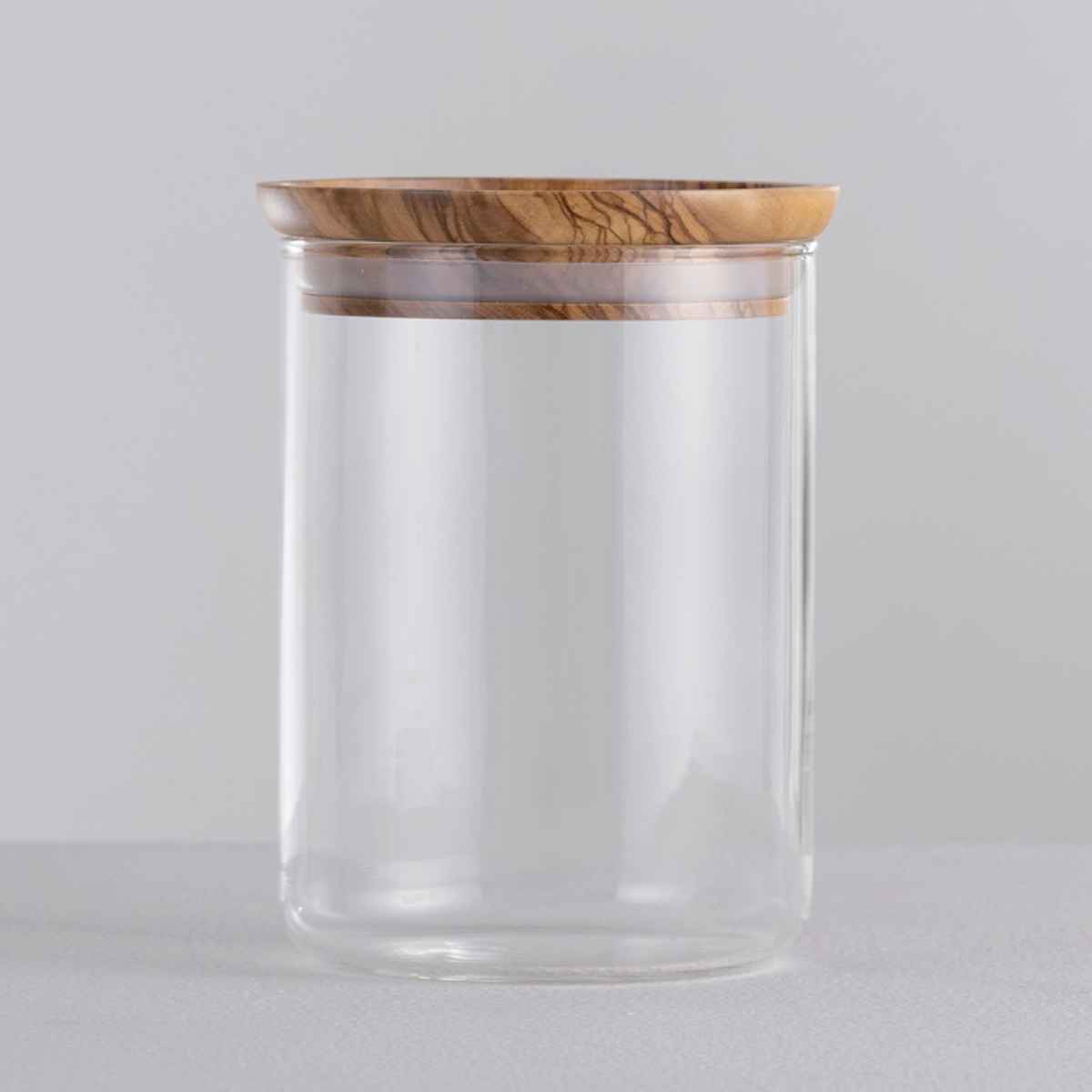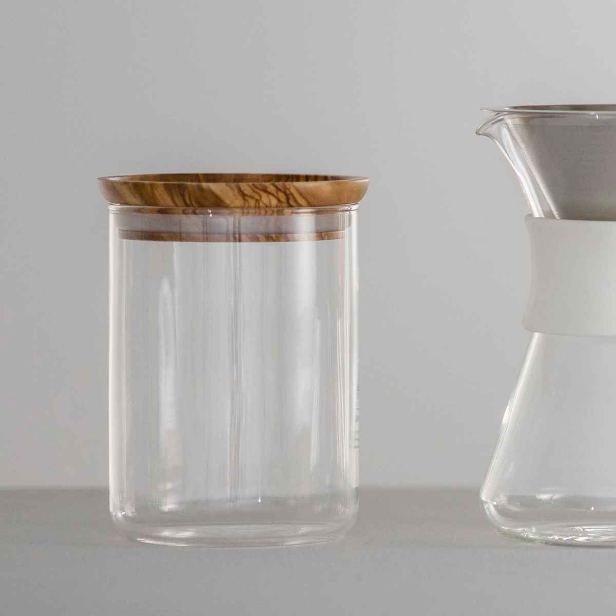 ●耐熱ガラスにオリーブウッドのフタを組み合わせたキャニスターです。