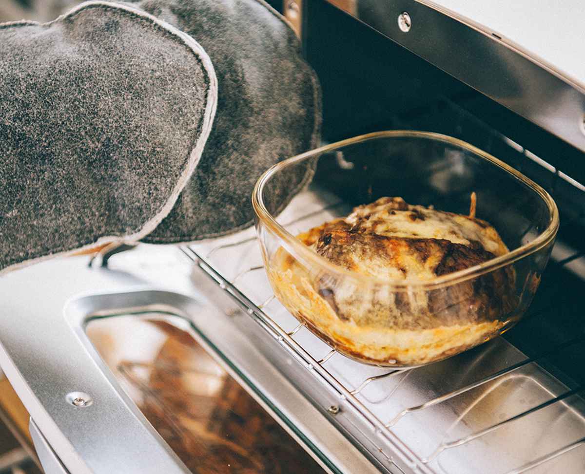 耐熱ガラス製の保存容器は、フタを外せばオーブン調理・トースター調理が可能です。電子レンジも使用可能なので作り置きしたおかずなどの温め直しもできます。