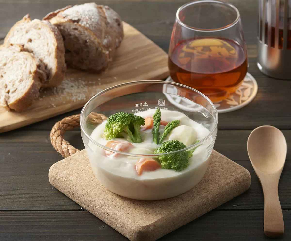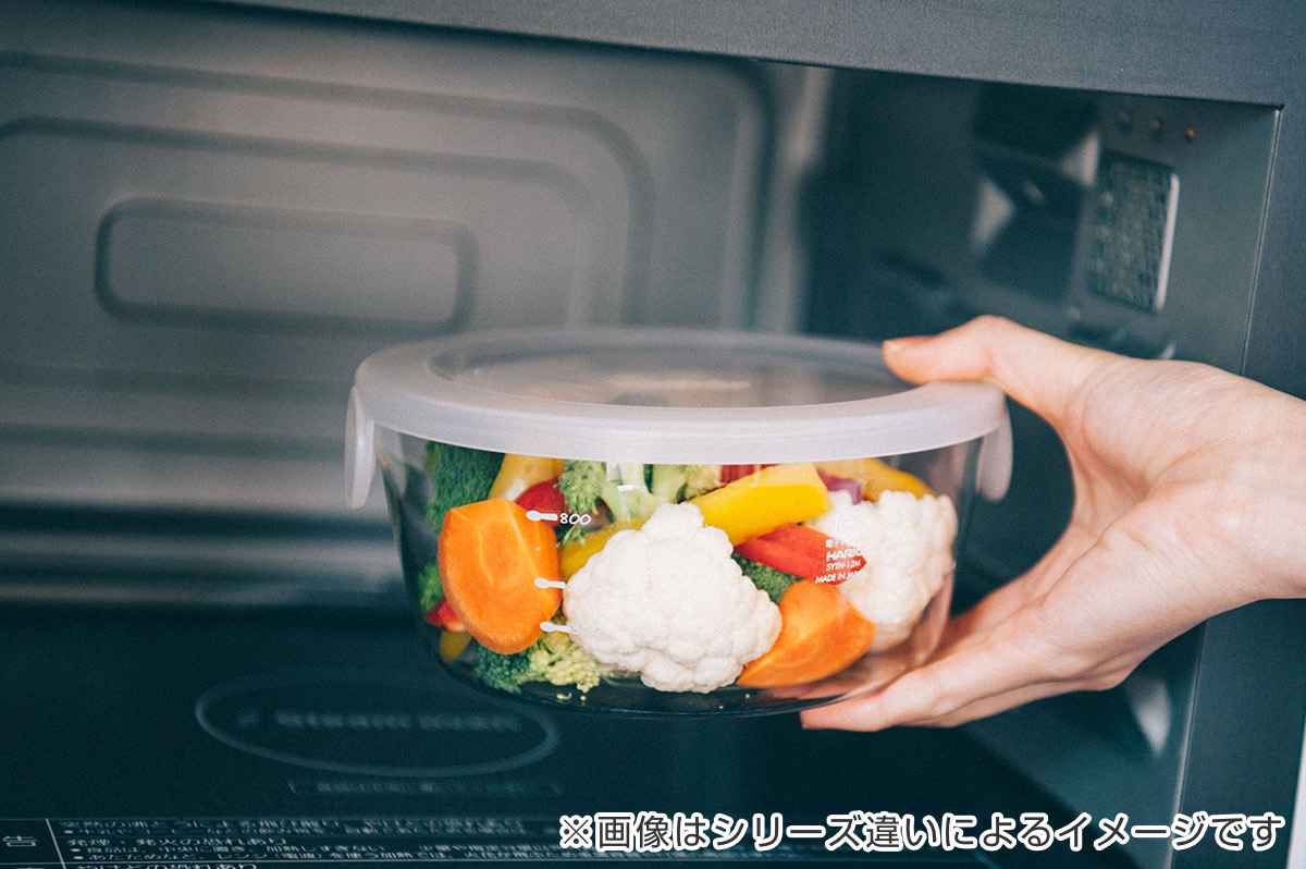 シンプルなデザインのガラス容器は調理してそのまま器として食卓へ出すことができます。