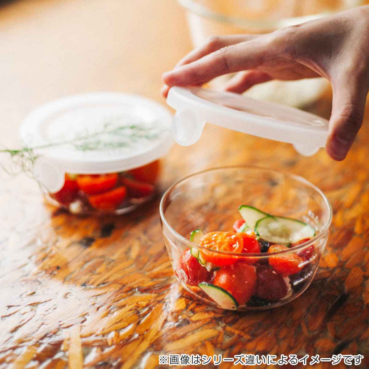 下ごしらえから、保存、温め直しまで幅広くご使用いただける耐熱ガラス製の丸型保存容器です。色と匂いが付きにくいガラス製の容器なのでいろいろな食材を気にせず保存できます。汚れも落ちやすく、洗い物が楽で気軽に使えます。