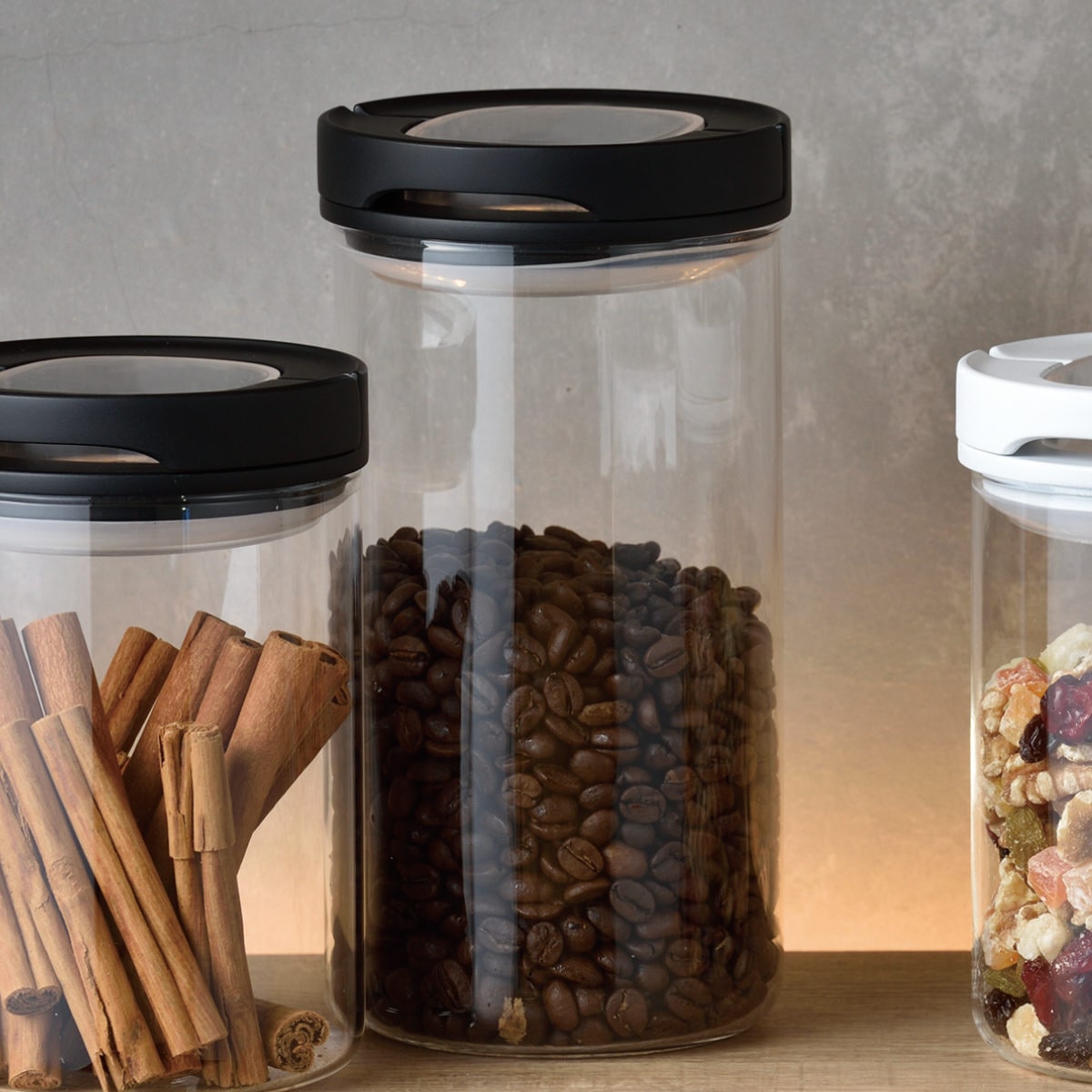 上からも横からも見やすいクリアな密閉キャニスター1Lです。乾燥の気になるコーヒーはもちろん、お茶・ドライフルーツなどの保存など多様にお使い頂けます。