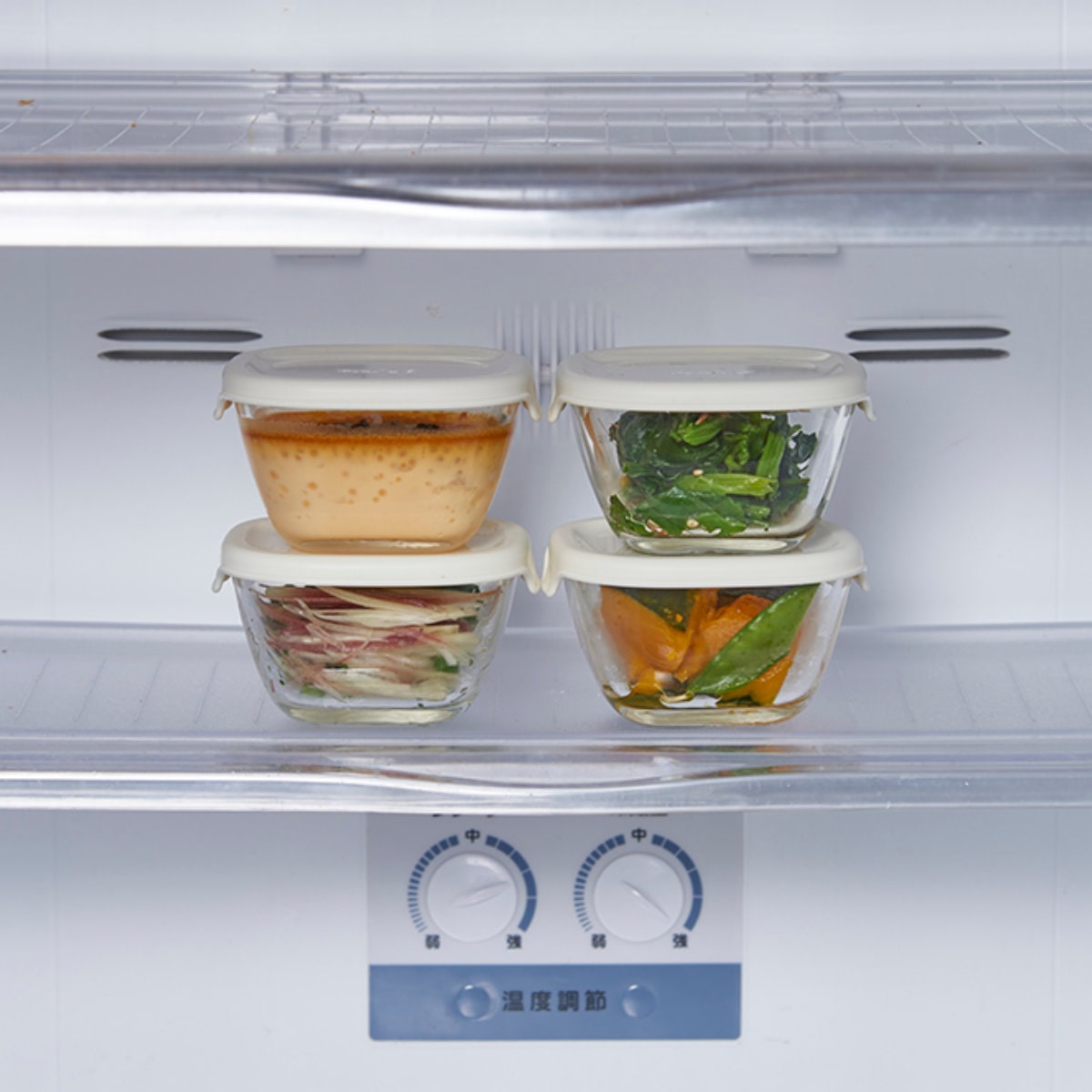 ●耐熱ガラスなのでにおい移りしにくく、中身がすぐ分かり食材を小分け保存するのにちょうどいいサイズです。
