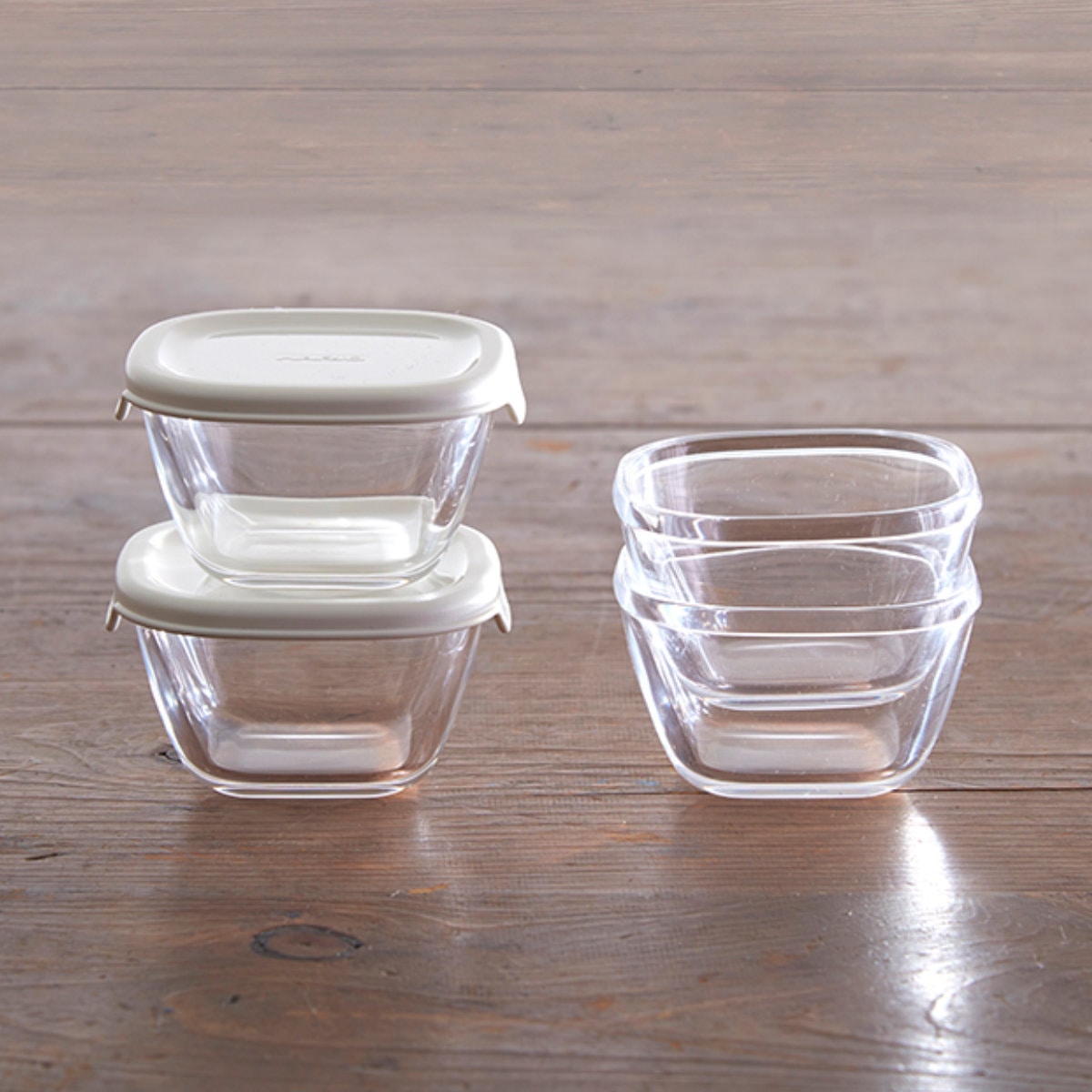 クリアな耐熱ガラス製で積み重ねても中身がパッと確認できます。
