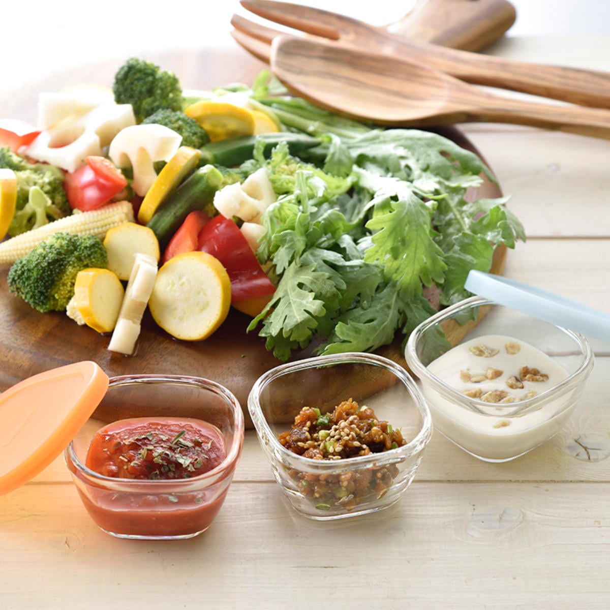 ●食材の保存に便利な耐熱ガラス製のフタ付ミニ小鉢3個セットです。