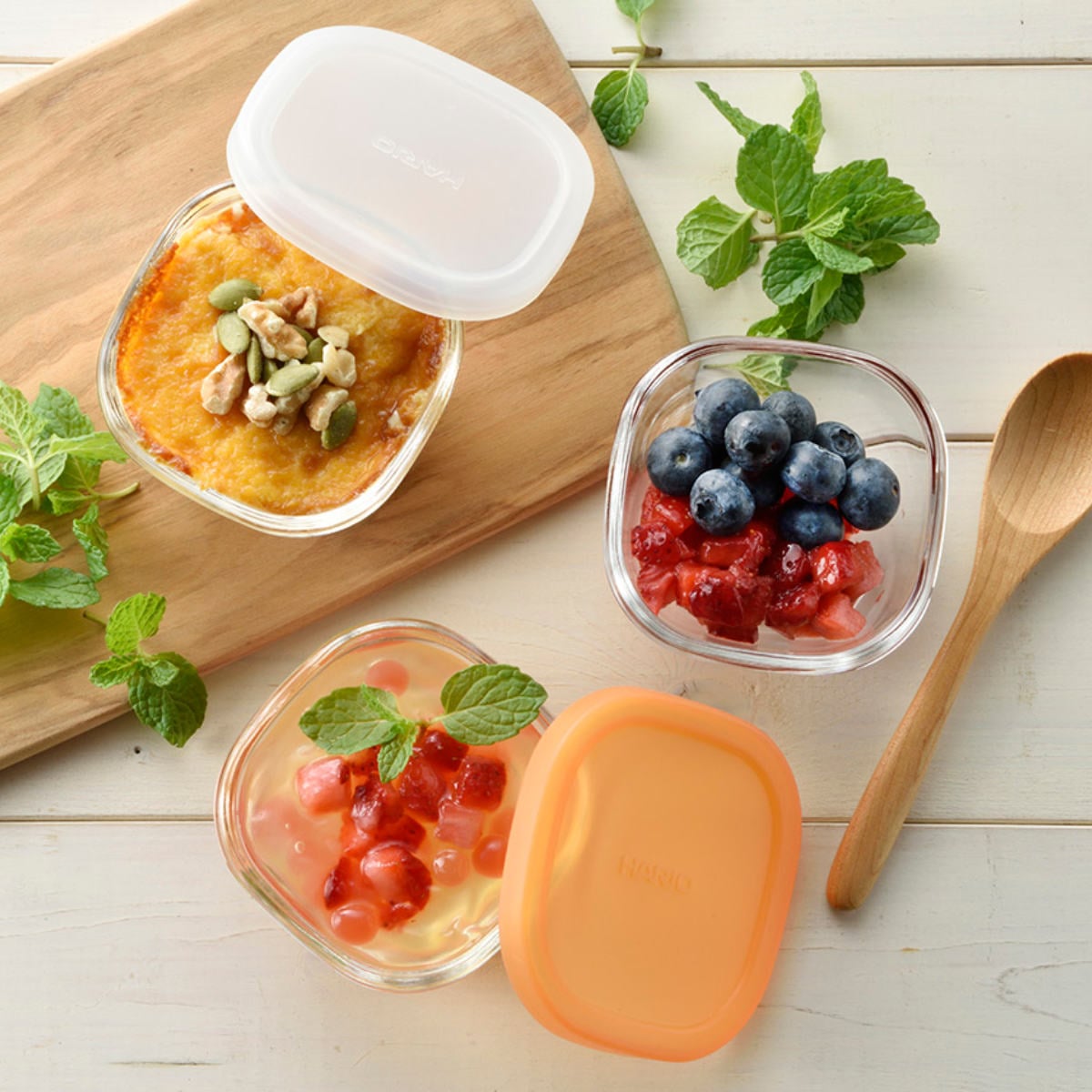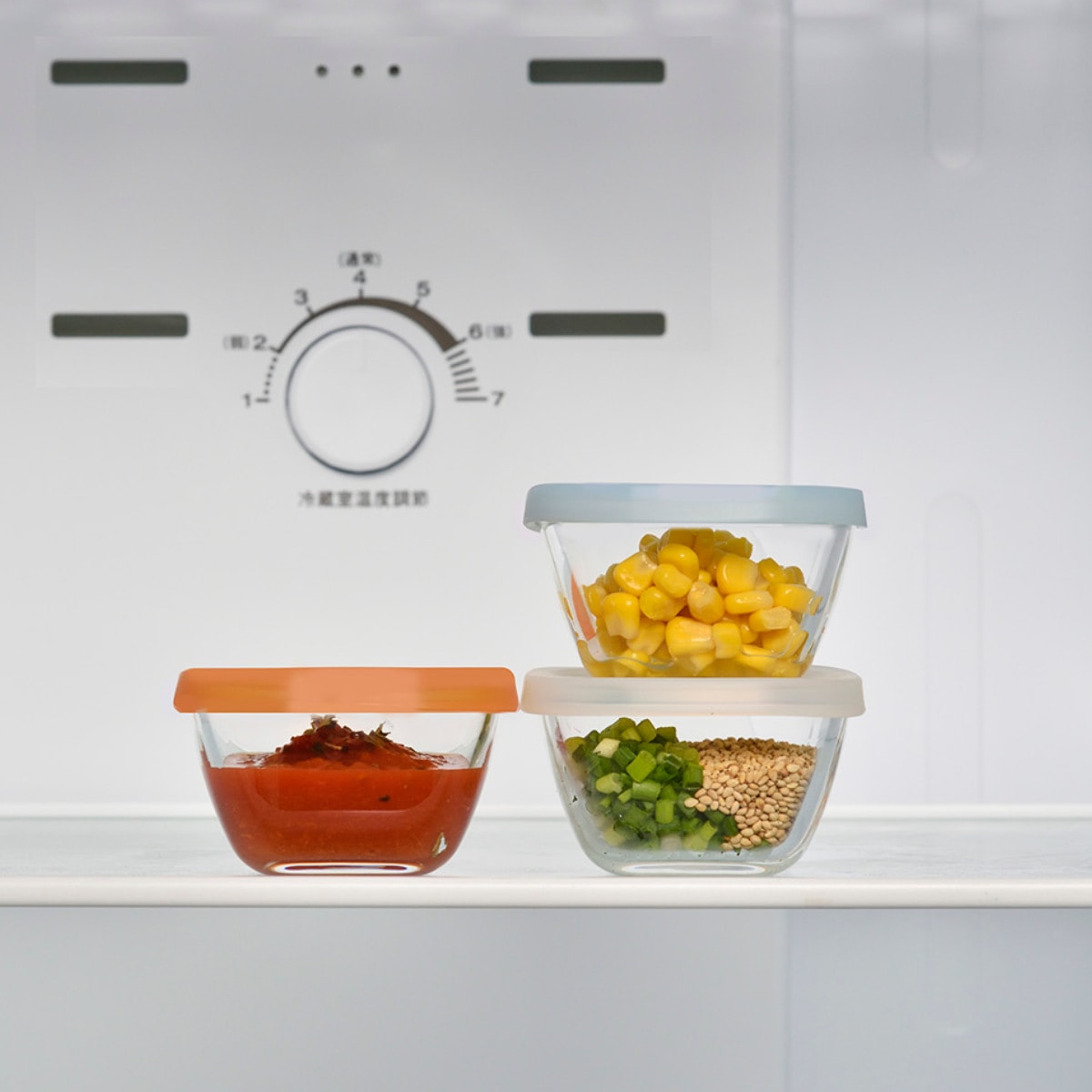 密封性の高いシリコーンフタ付き耐熱ガラス製角小鉢