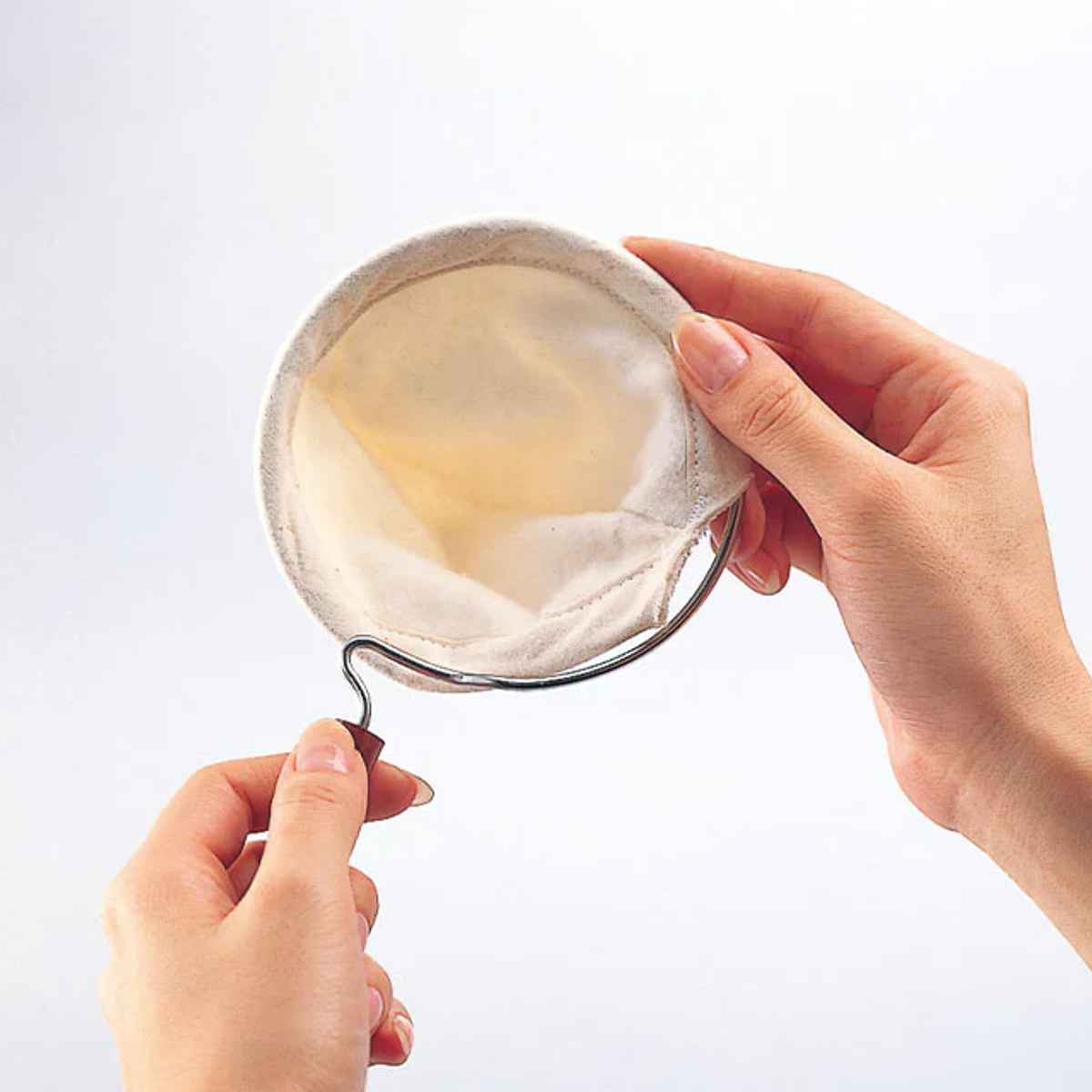 初めてご使用の際はネルを煮沸し、水に浸けて粗熱を取り固く絞ってご使用ください。