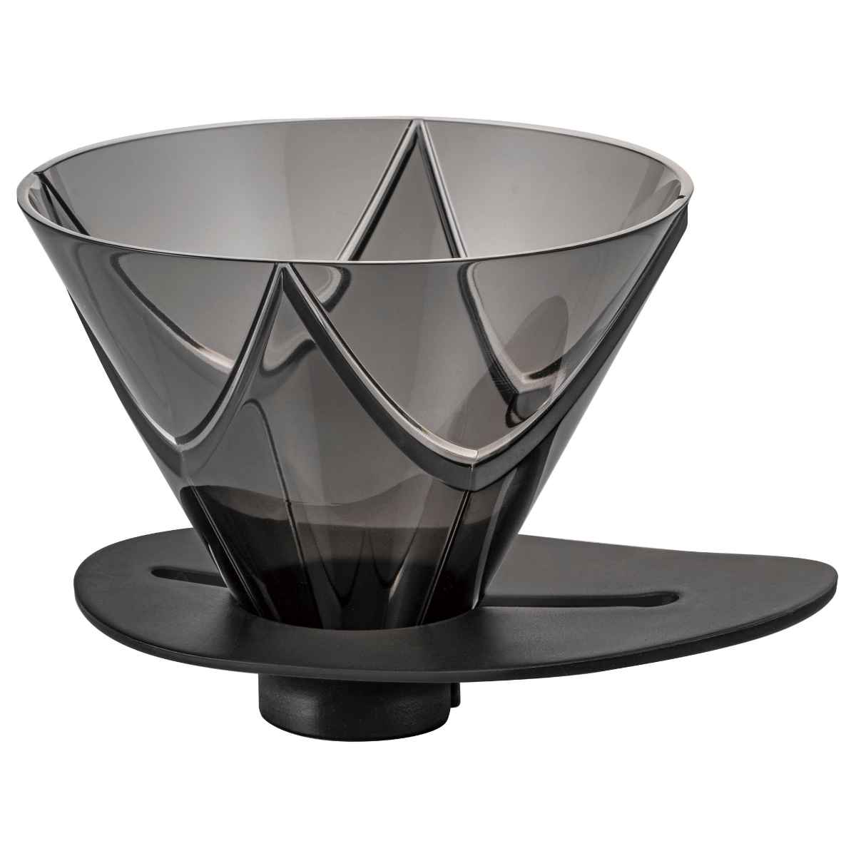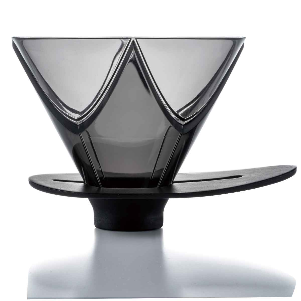 透明でレイヤー感のあるデザインのドリッパーです。コーヒー抽出時の「蒸らし」なしで、お湯を一回注ぐだけで、抽出できるドリッパー。ドリッパー内側に凸のリブがなく、お湯を注ぐとペーパーが張りつき星型の溝をつたって、ゆっくりとコーヒーが抽出されます。
