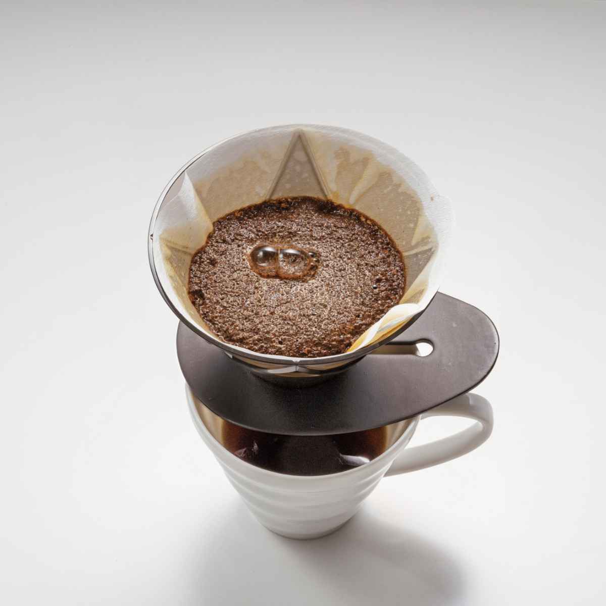 自由度の高いV60透過式ドリッパーに対して円すい形の無限の可能性を追求し、お湯を一回注ぐことで抽出できるドリッパーを開発しました。