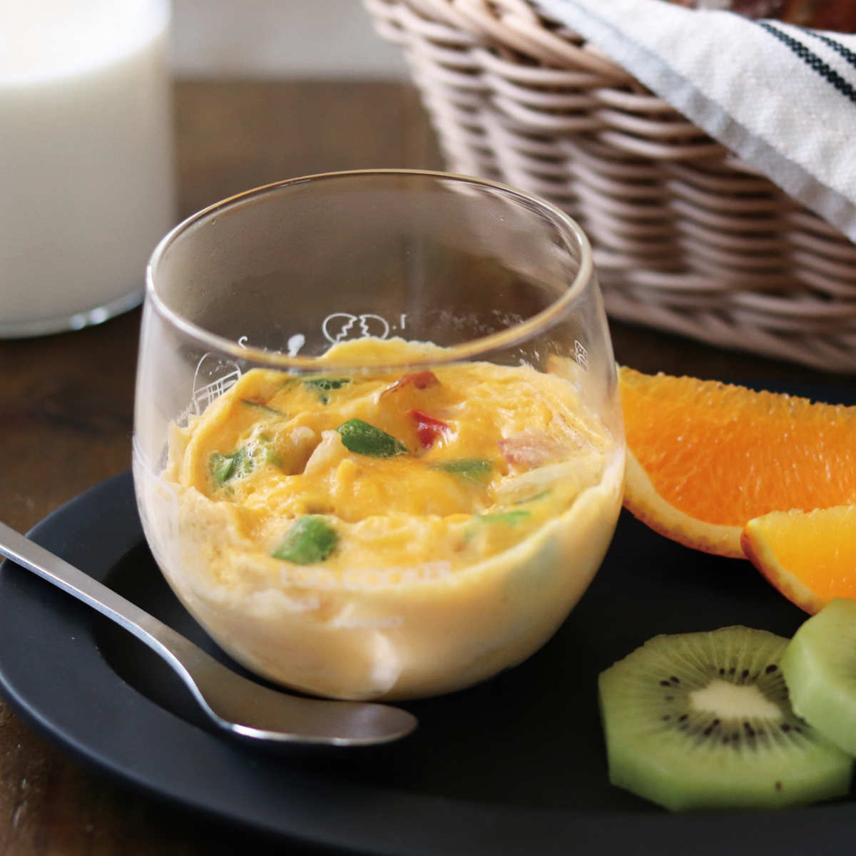 ガラス製なので、様々な食器と相性が良く、そのまま食卓に出してもおしゃれになじみます。半熟たまごやオムレツ、具入りスクランブルエッグなども作れるので、パパッと食べたい朝ごはんにピッタリです。