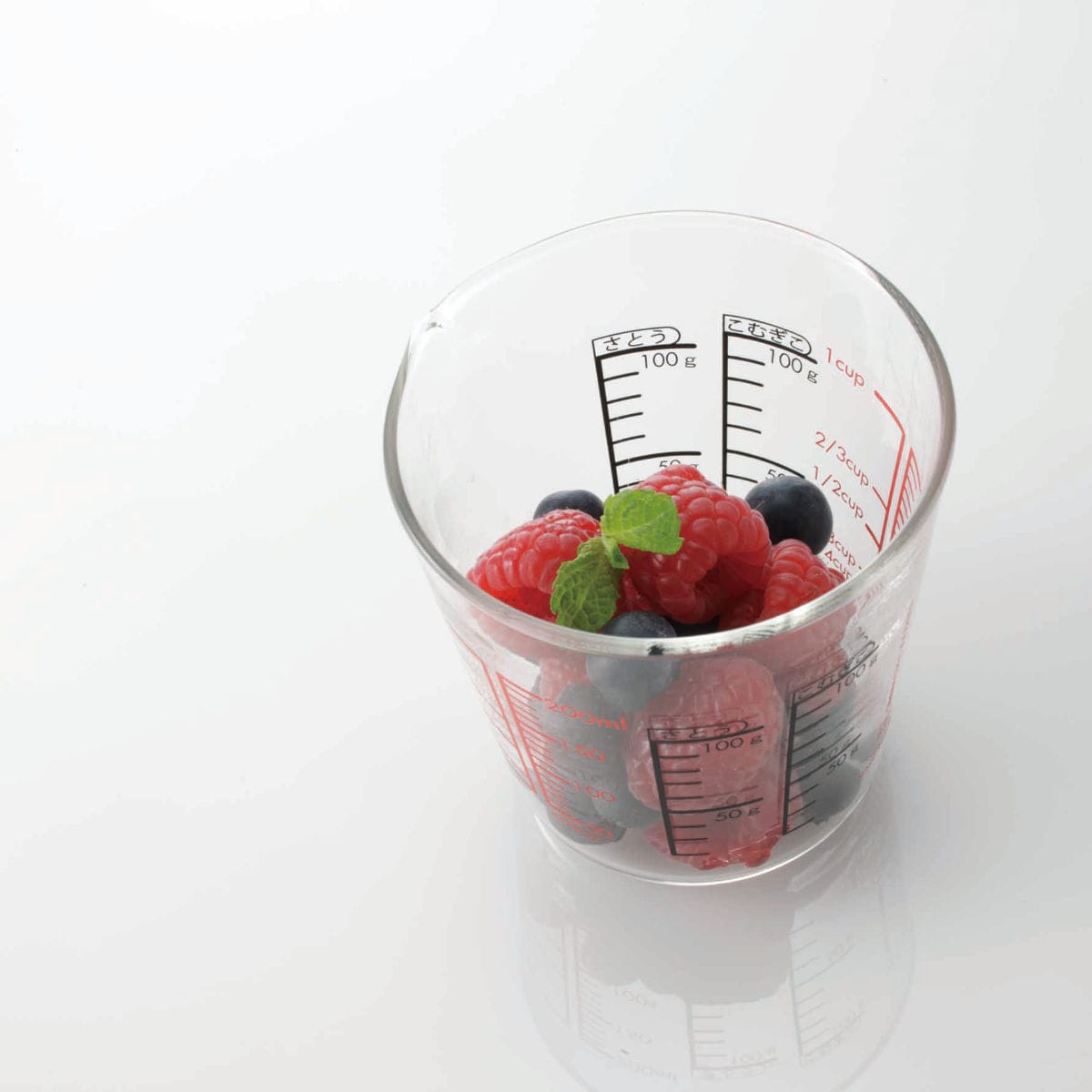 耐熱ガラスで目盛りが見やすいメジャーカップ