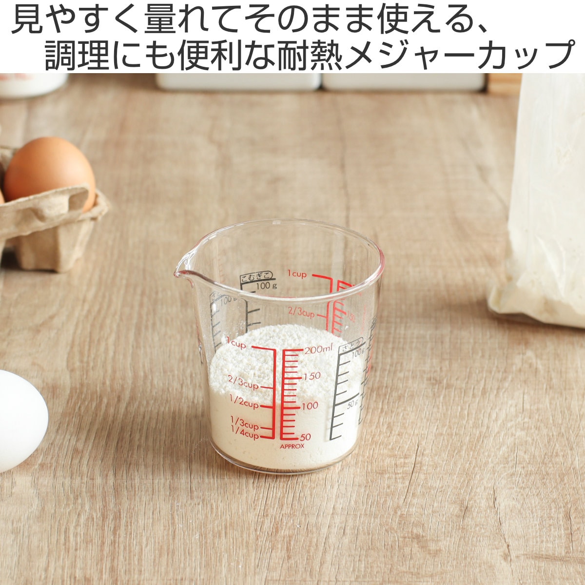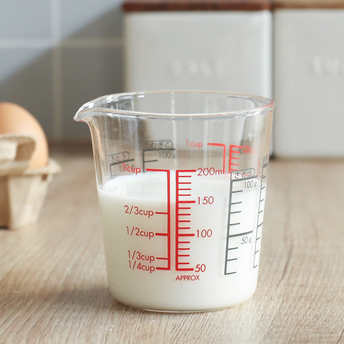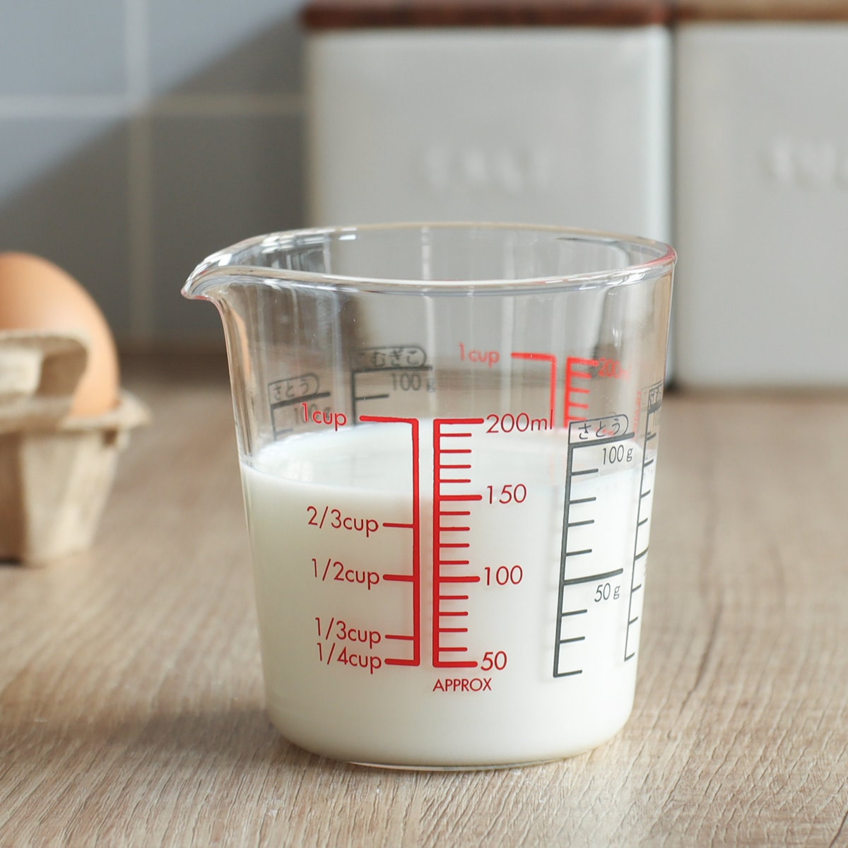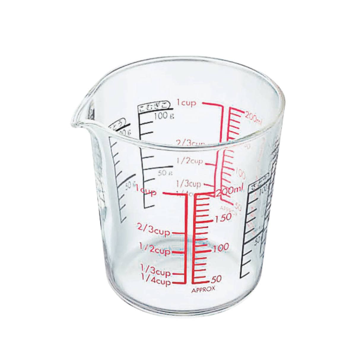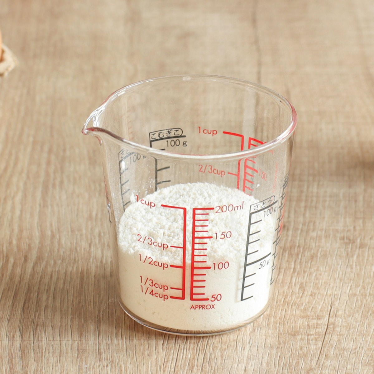 液体を量る時は赤色の目盛り、粉を量る時は黒色の目盛りと色分けされています。さまざまな工夫が詰まっており、シンプルな作りが嬉しい点です。お菓子作りをしたい時にも活躍します。