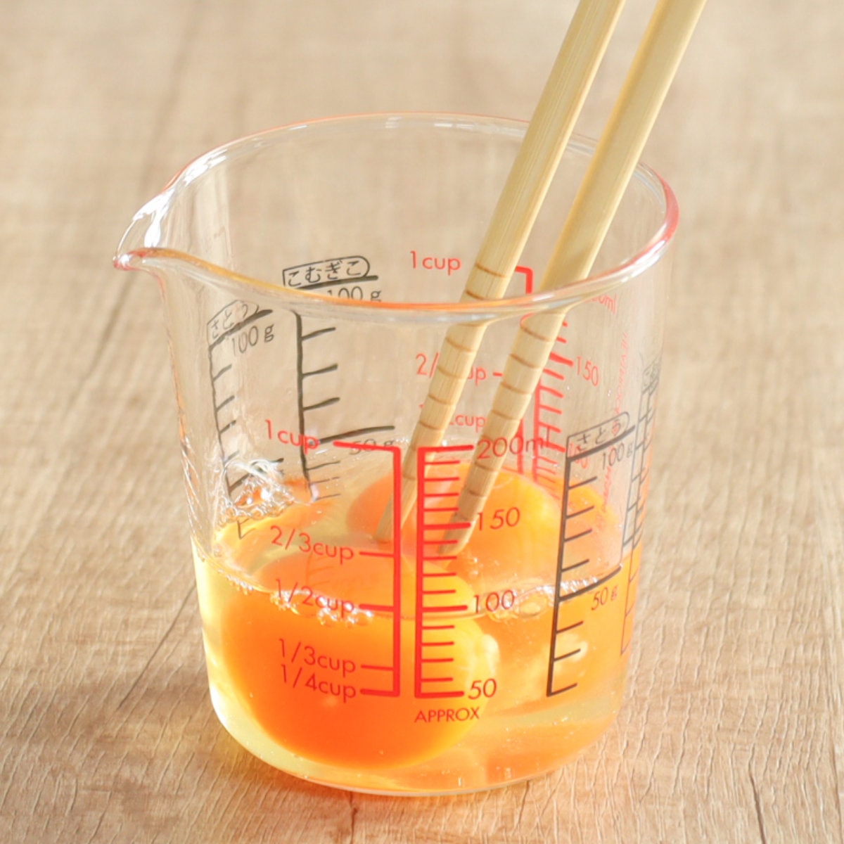 口径が広い設計で、卵も菜箸でそのままスムーズに混ぜられ、下ごしらえから調理まで手間なく行えます。