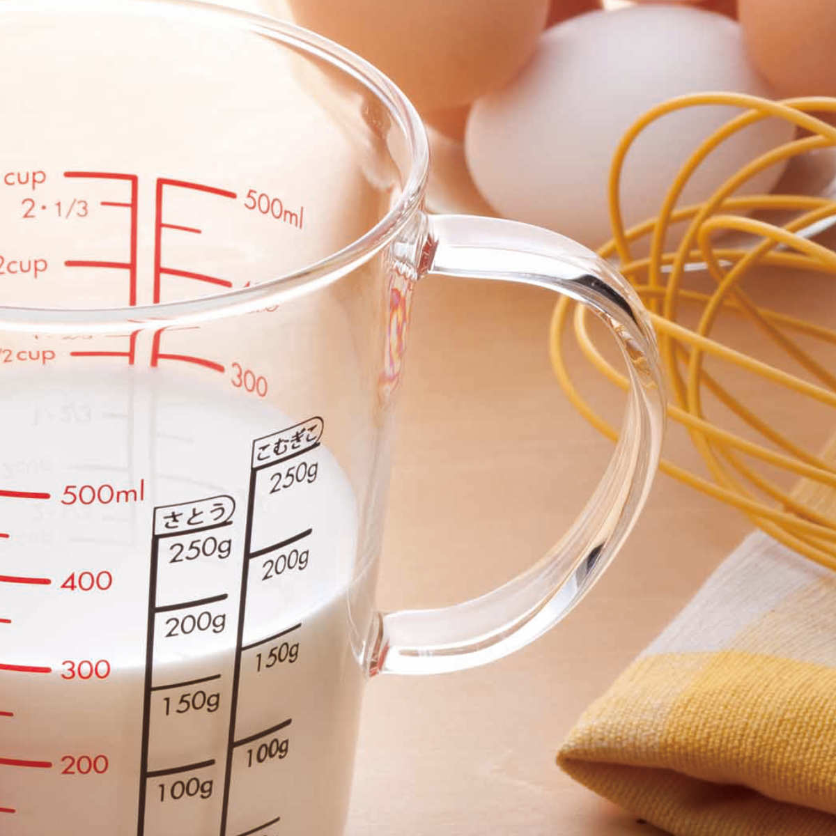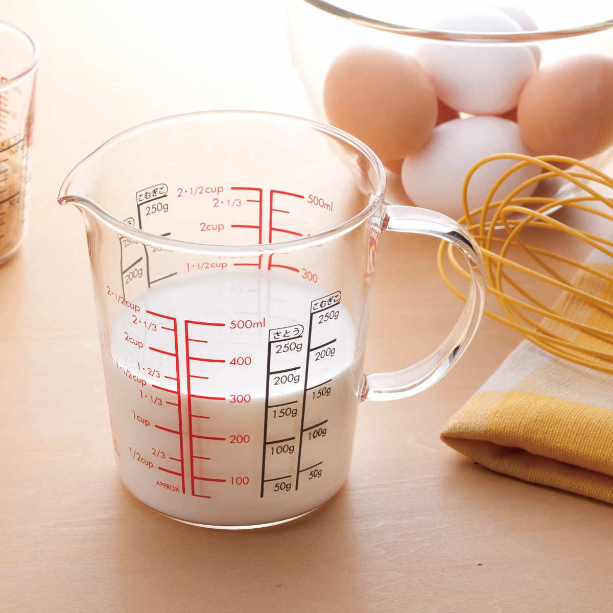 耐熱ガラスで目盛りが見やすいメジャーカップ