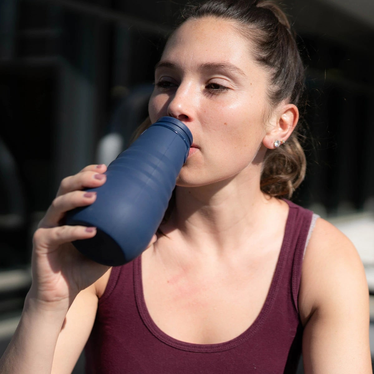 飲み終わったボトルは、蓋部分のストラップを使ってバッグなどに掛けて持ち運ぶことができます。中身がこぼれてしまうおそれがあるので、ボトルを空にしてから掛けてください。