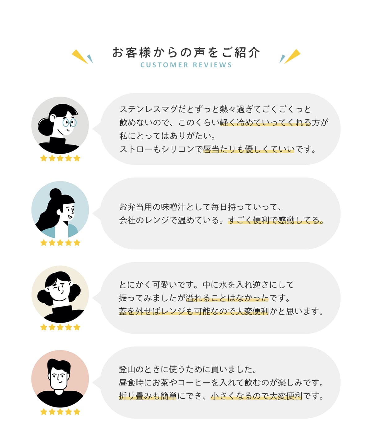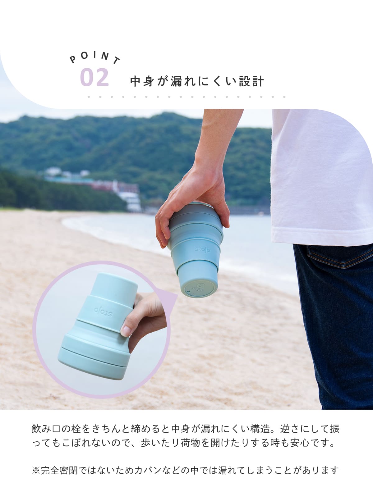 | 材質 | 本体・プルタブ・ストロー:シリコーンゴム 蓋・スリーブ:ポリプロピレン FDA・LFGB認証・BPAフリー・鉛フリー |