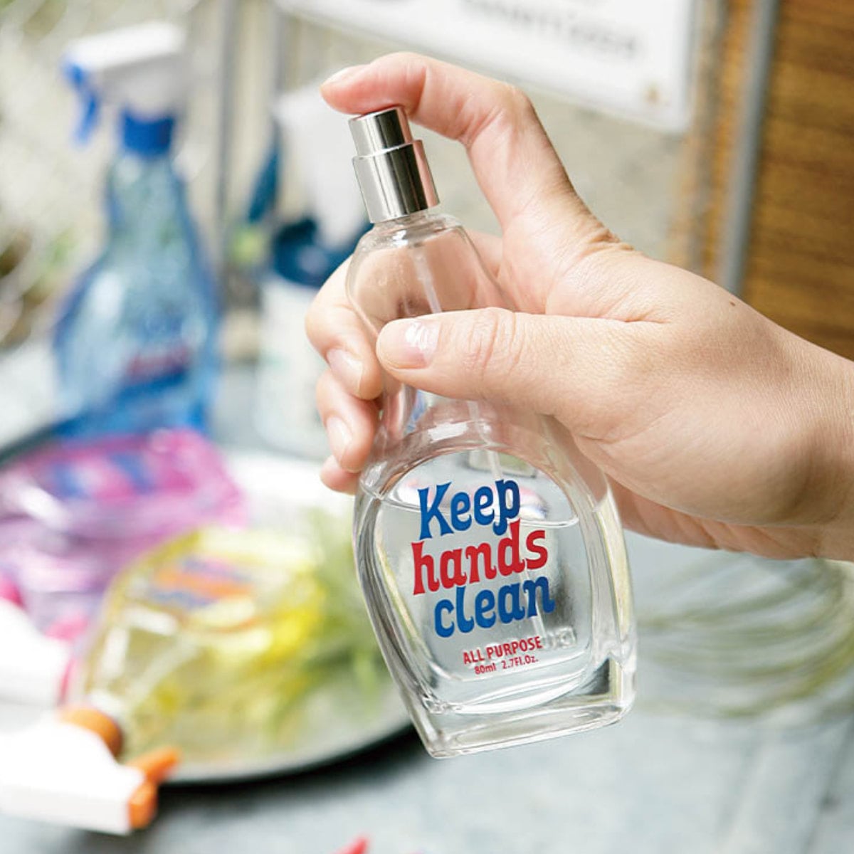 液体を詰め替えて、玄関先やお店の出入り口に置いて除菌スプレーとしてご使用いただけます。ビビットなカラーがインテリアのアクセントになり、お部屋を明るく楽しい雰囲気にします。