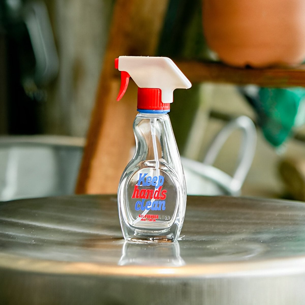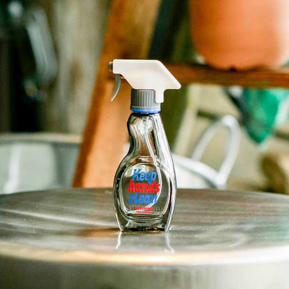 フェイクのトリガーノズルがキャップになっている、ガラス製スプレーボトルです。ついついトリガーを引きたくなってしまう遊び心のあるデザインです。